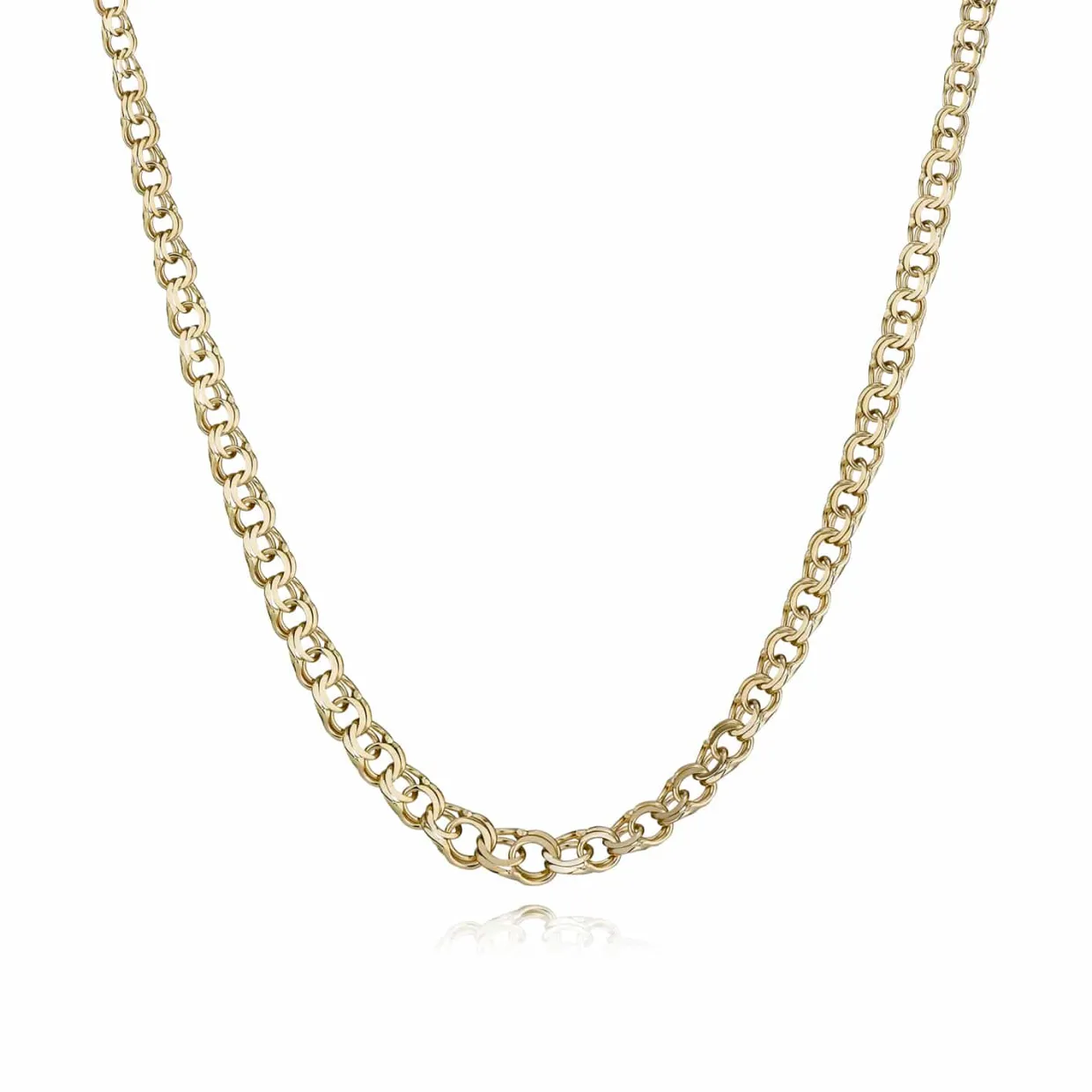 Halskæden måler på det bredeste sted 5,3 mm og har en længde på 45 cm.