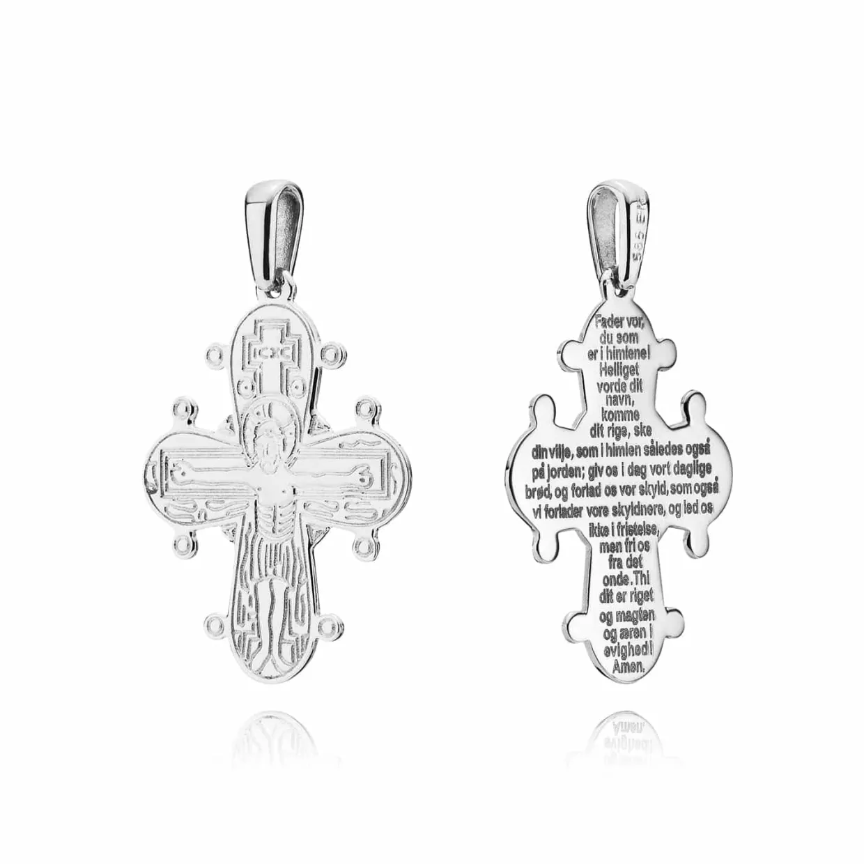 Bagpå korset står hele fadervor skrevet. Korset findes og med blank og med de5 på bagsiden.