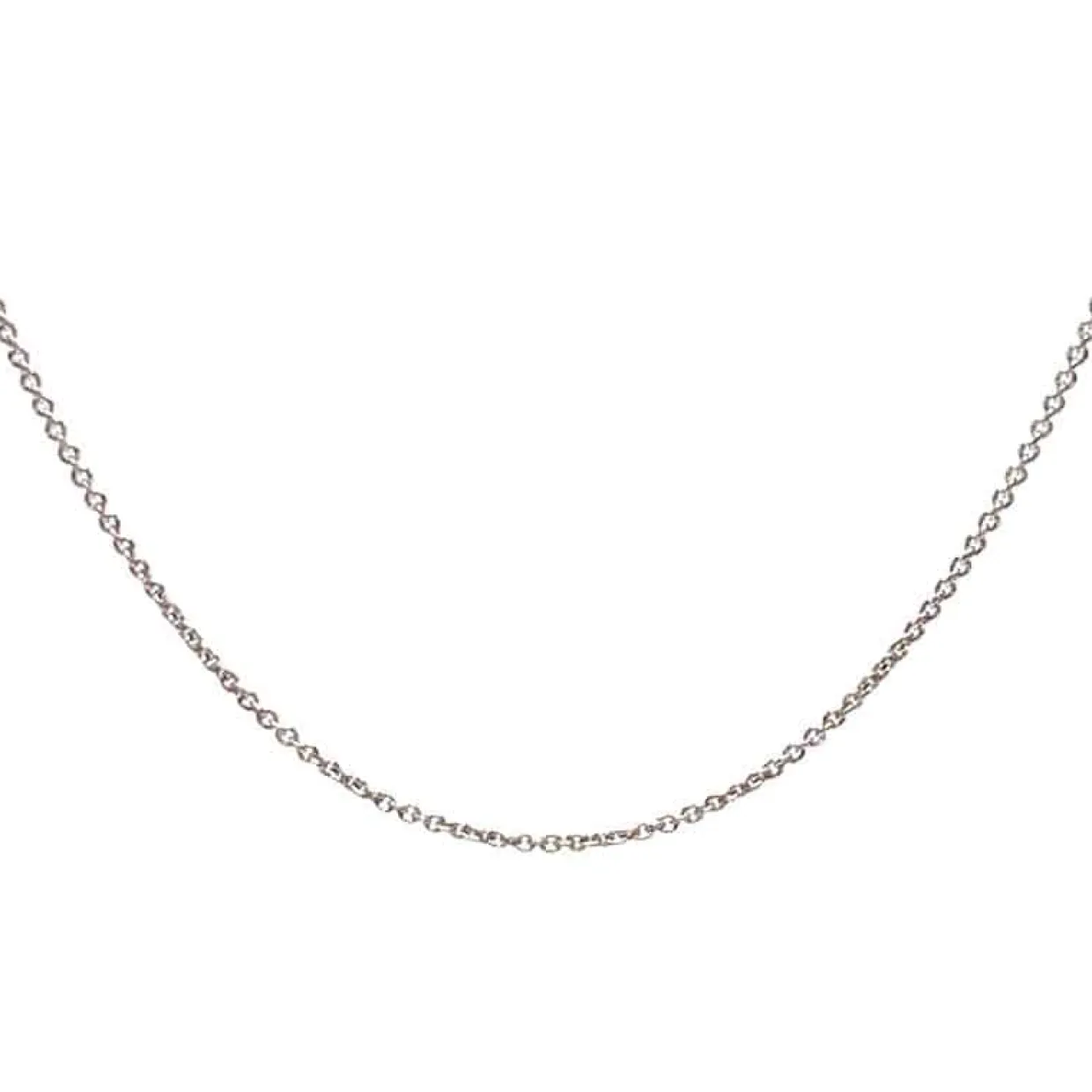 Sølv rhodineret halskæde rund anker i 36 cm. Kæden har en tråd tykkelse på 0,40 mm og en bredde på 1,5 mm. Kæden er udstyret med en fjedre rings lås.