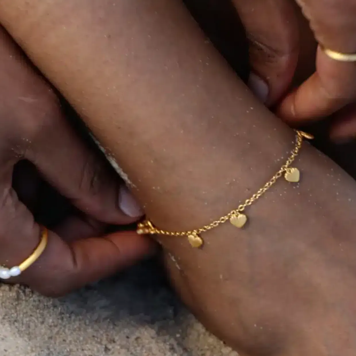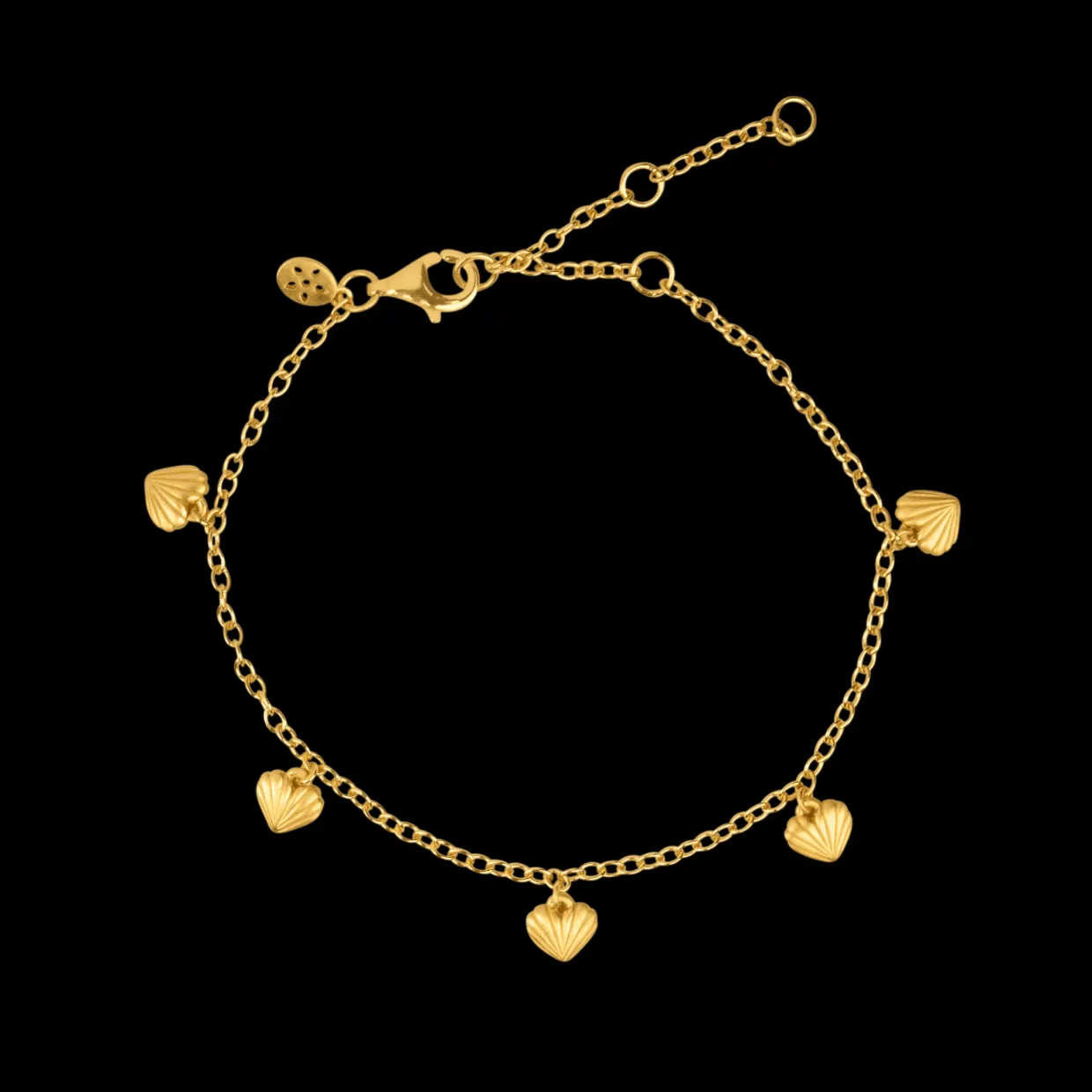 Just Love armbånd i sølv forgyldt fra ByBiehl er et smukt smykkevalg. Armbåndet har en masse små hjerter, der måler 6 mm x 5.20 mm. Med en længde på 19 cm kan armbåndet let justeres for at passe til din præference og komfort. Dette smukke armbånd udstråler en følelse af kærlighed og elegance med sit fine hjertevedhæng og gyldne glød. Det er en smuk påmindelse om kærlighedens betydning og kan være en meningsfuld gave til en særlig person i dit liv. Armbåndet er lavet ud af 100% genbrugs sølv og guld.