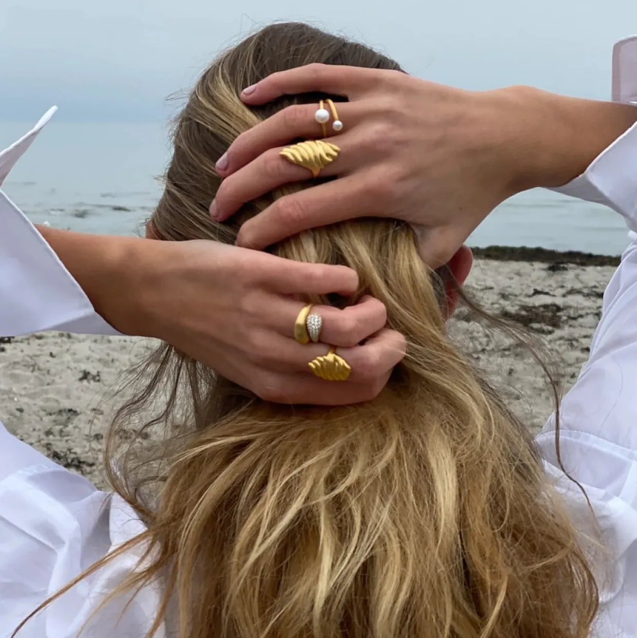 Ringen er en elegant ring designet i forgyldt sølv, inspireret af naturens organiske former. Ringen har et bølgende, sandet mønster, der symboliserer de rolige og smukke sanddyner. Den forgyldte finish tilføjer et luksuriøst touch, hvilket gør denne ring perfekt til både hverdagsbrug og specielle lejligheder. Med sin enkle, men markante stil, giver den et sofistikeret og tidløst udtryk.