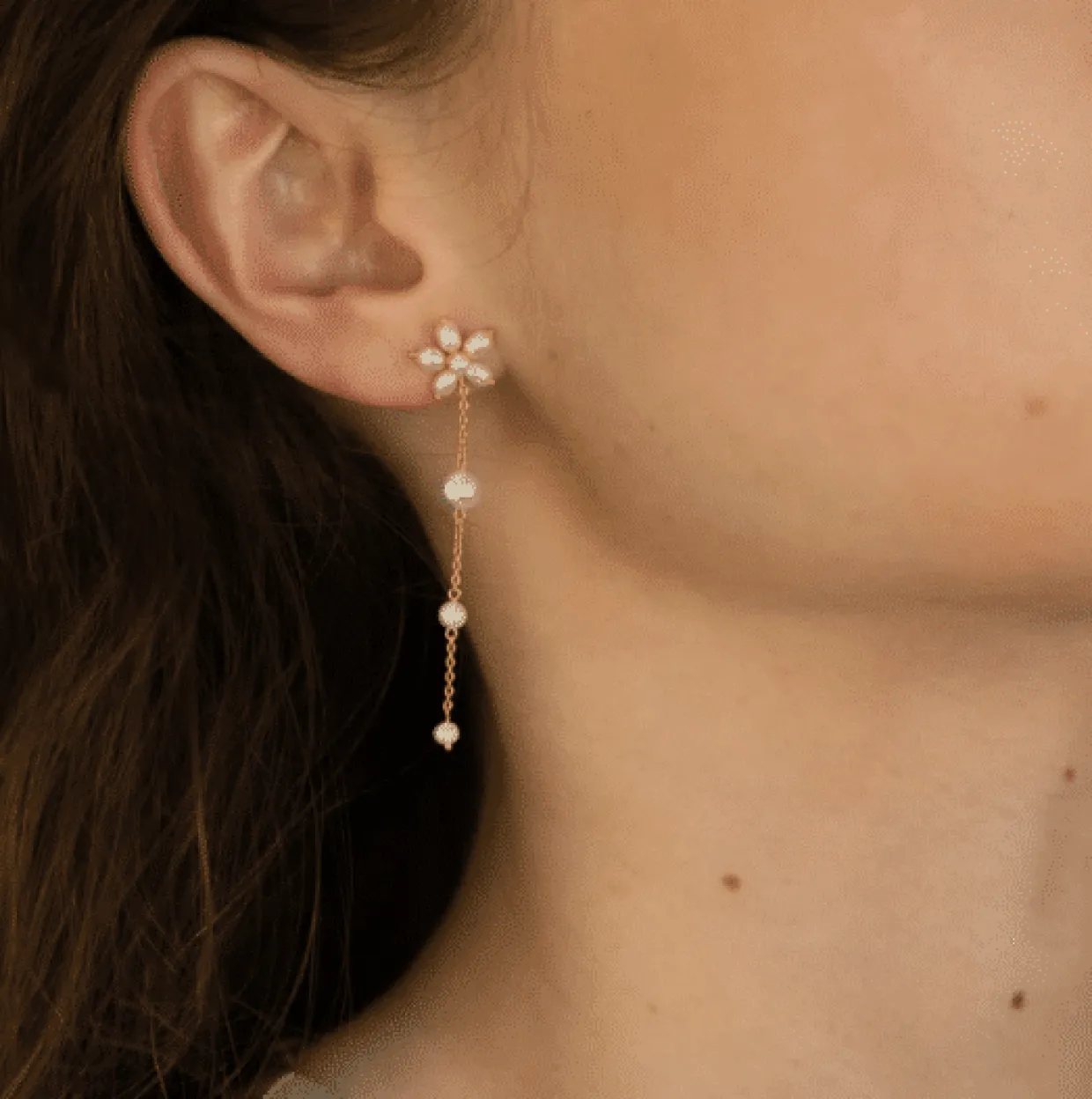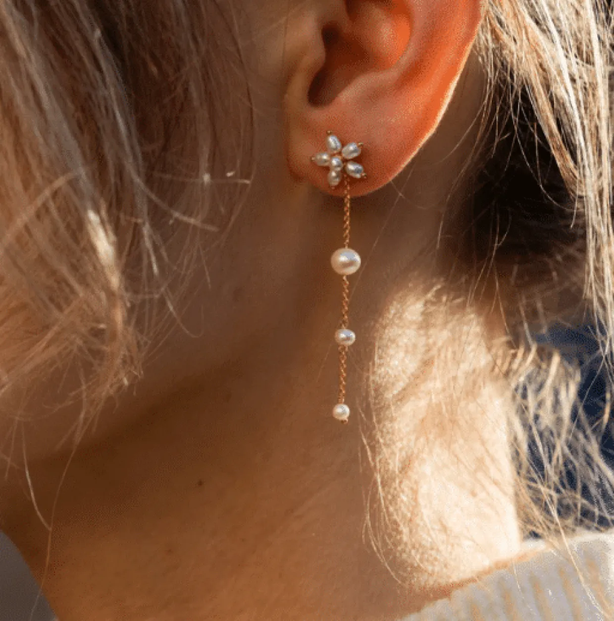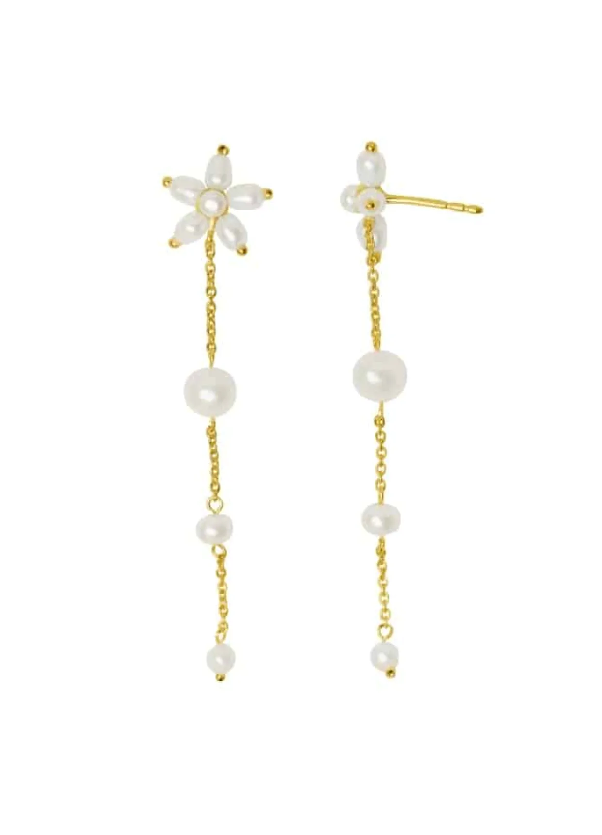 Pearl signatur earhanger long fra ByBiehl, lavet i forgyldt sterling sølv, designet med de smukkeste hvide perler.