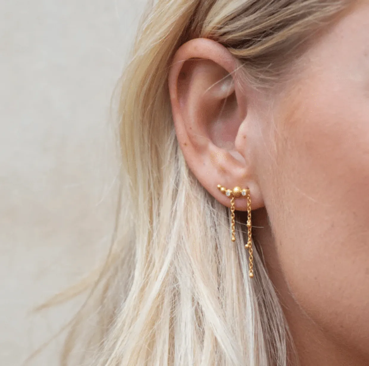 Earclimber i 925 sterling sølv, Materialet har fået en håndlavet satinoverflade, der giver smykket et flot mat udtryk.