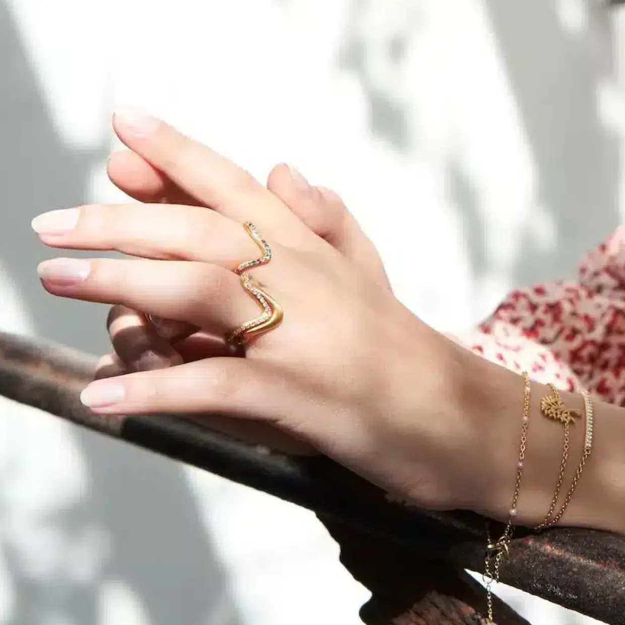 Smuk wave large ring med zirkoner som kan bruges alene eller sættes sammen med flere.