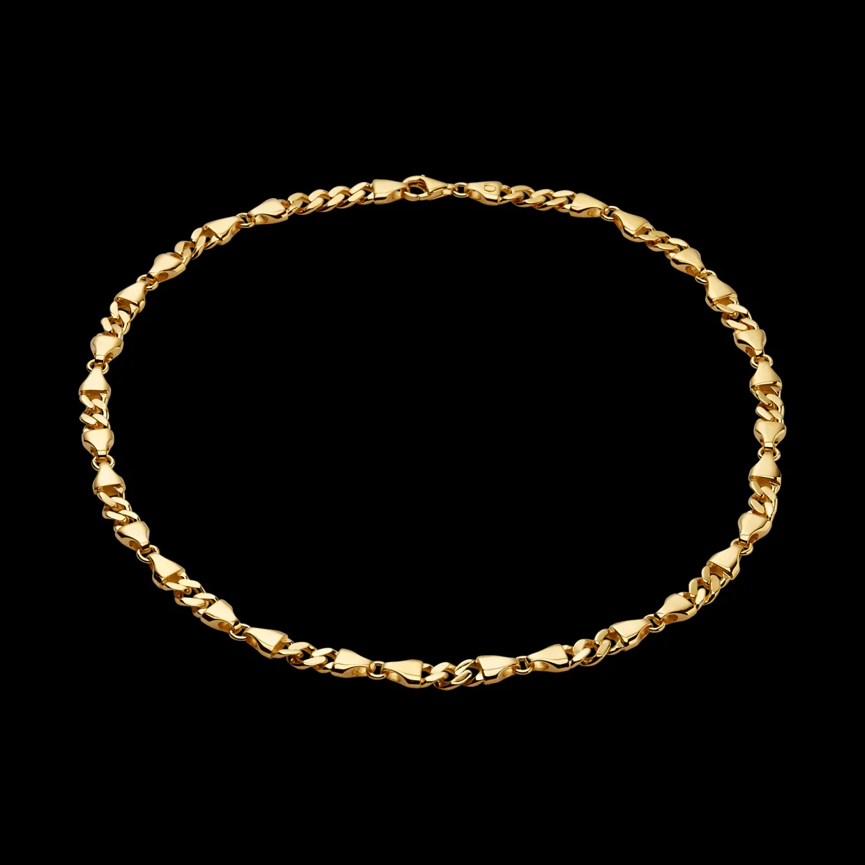 Halskæden har en bredde på 5 mm og en længde på 45 cm.