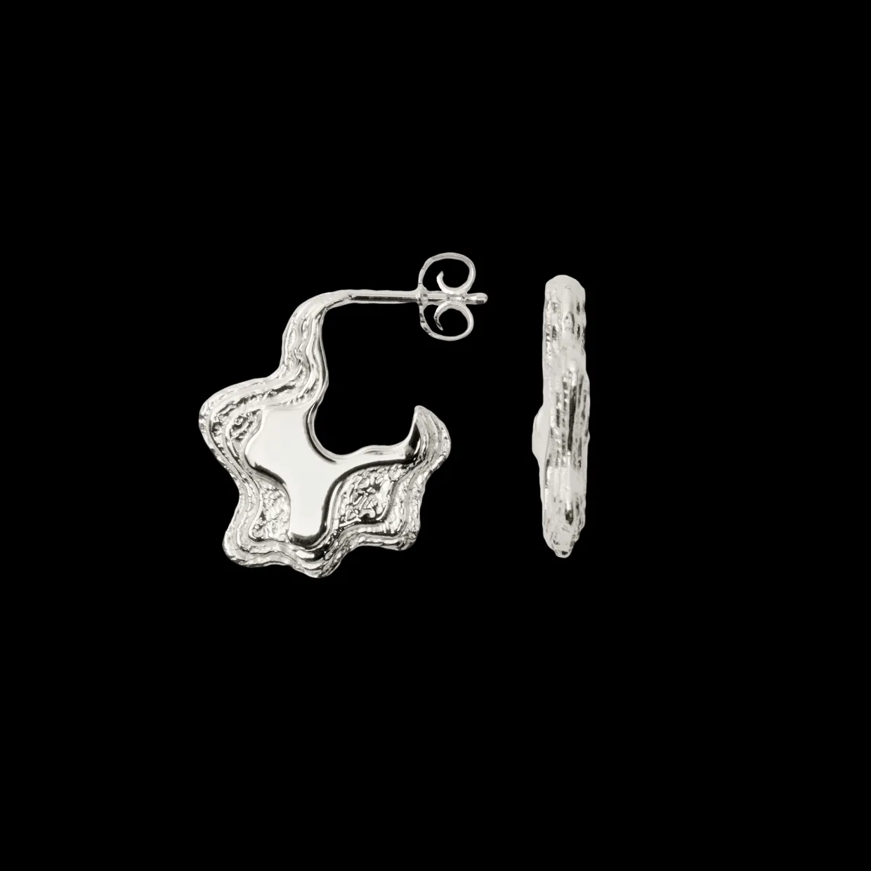 Den rene sølvoverflade fremhæver øreringenes elegante form og giver dem en kølig, skinnende glød. Dette gør dem alsidige og nemme at style, uanset om de bæres alene eller sammen med andre smykker. Sølvets tidløse kvalitet gør dem perfekte til både hverdagsbrug og mere formelle anledninger.
