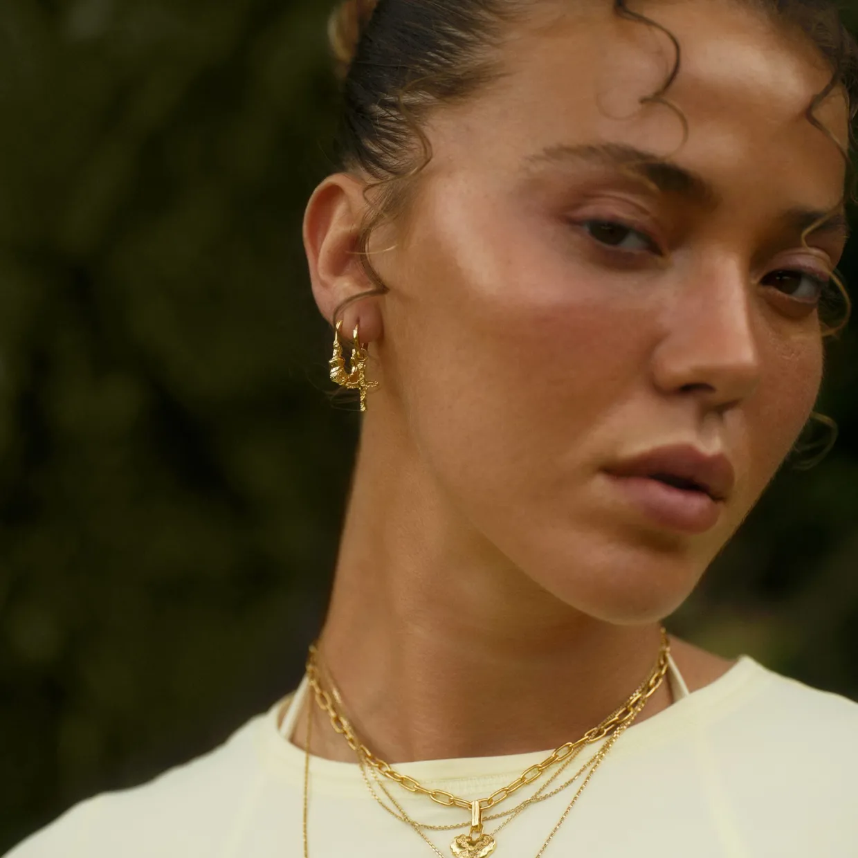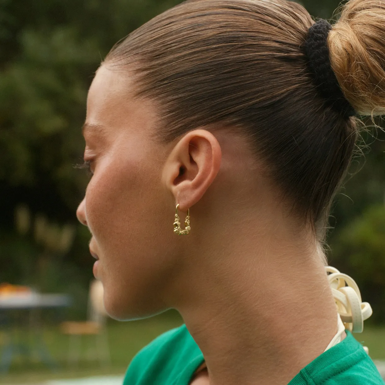 Øreringene er lavet i 925 forgyldt sterling sølv. Forgyldningen er en 22 karat forgyldning.