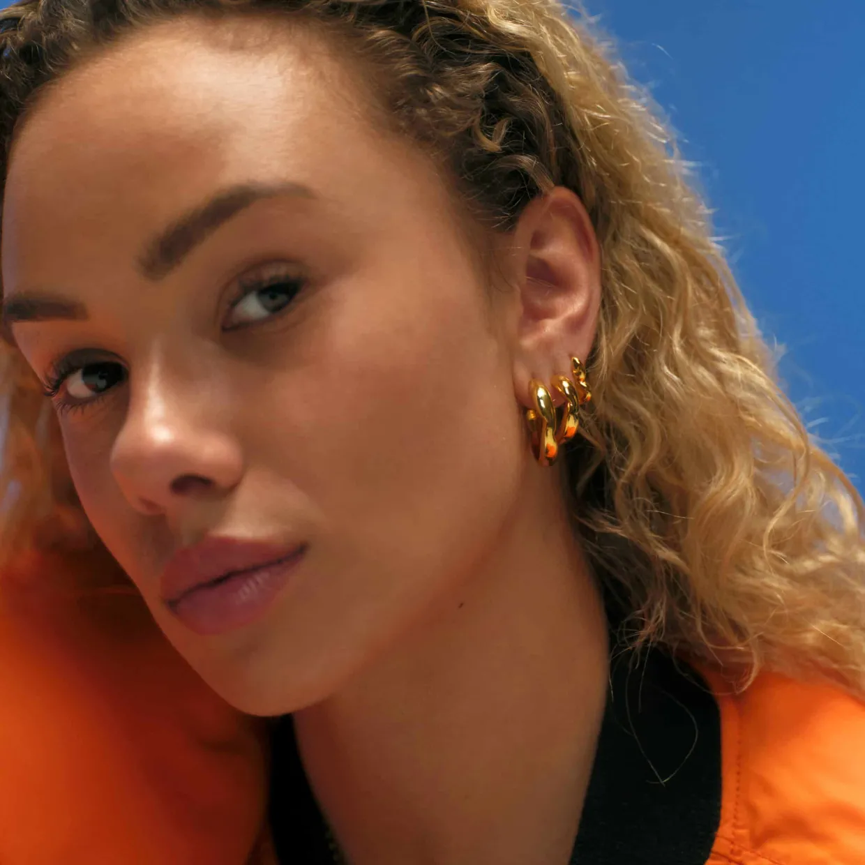 Designet er inspireret af puffede former som har en fyldig rund silhuet. Øreringene er større end mange andre designs, hvilket gør dem til et statement-smykke.