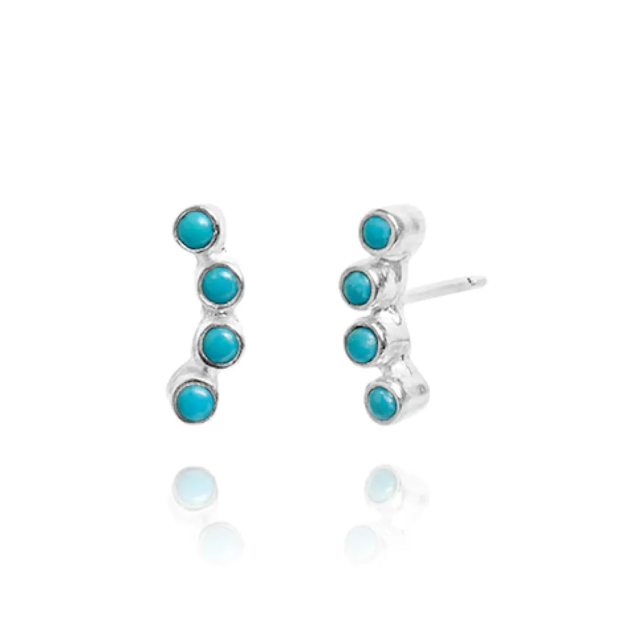 Smukke ørecrawler i sølv med små turkiser som crawler op af øret