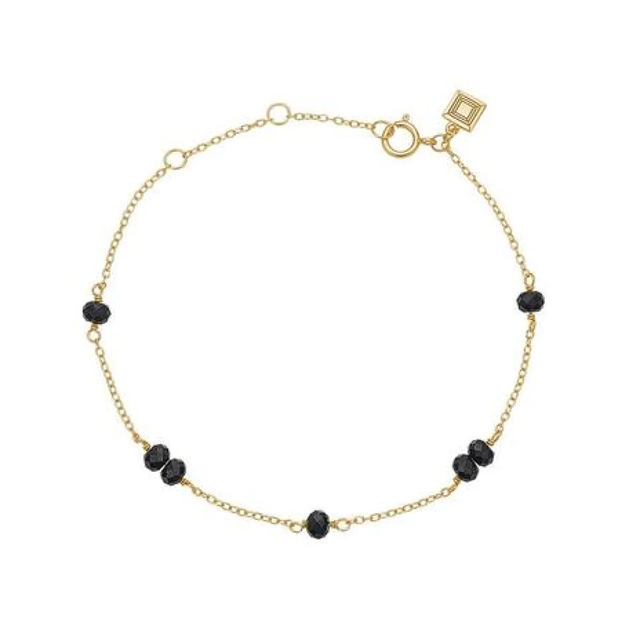 Armbåndet er fremstillet i sterling sølv, og belagt med guld og med sort spinel sten. Armbåndet er fra serien ‘Gem Candy’ der er kendt for sine farverige sten.