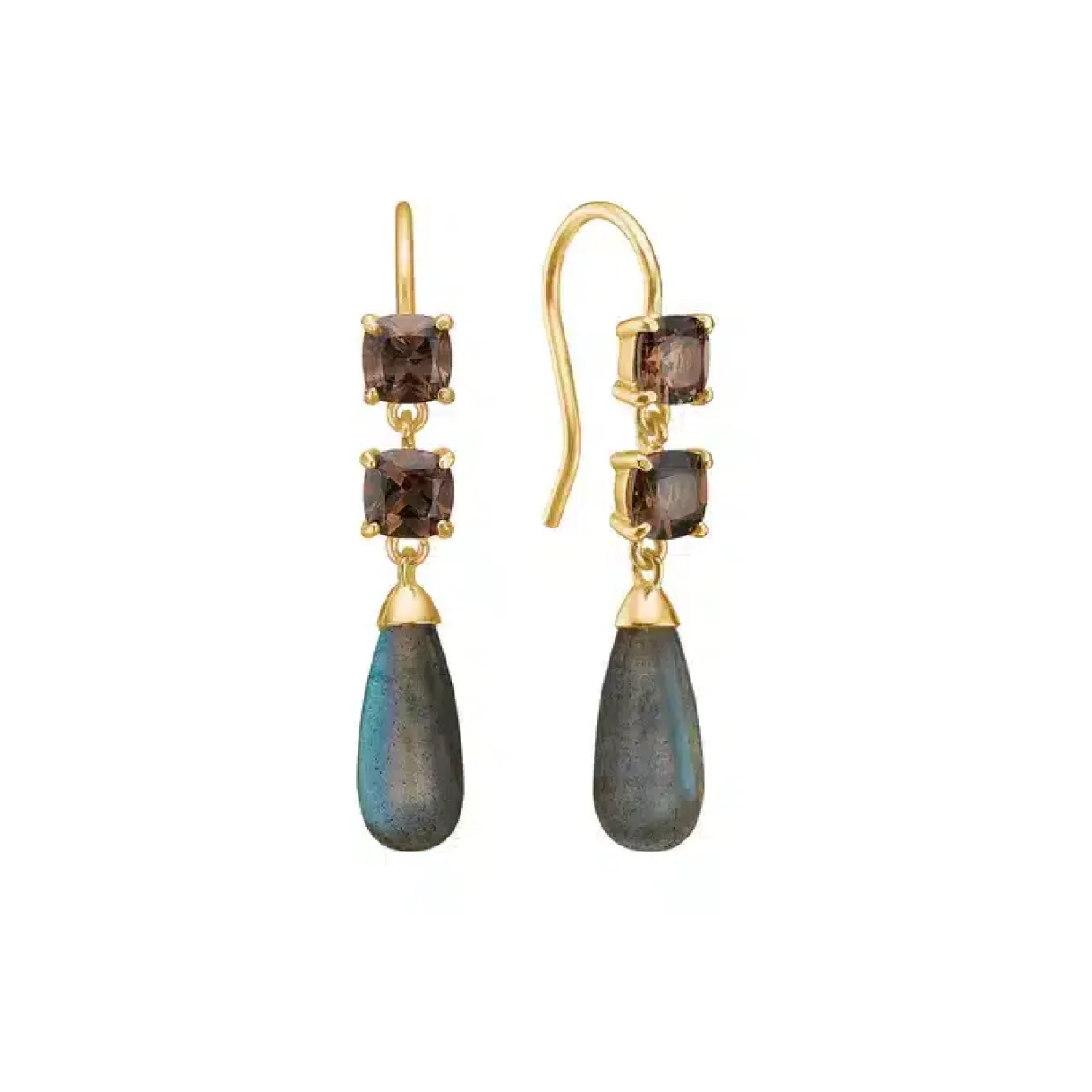 CARRE ØRERINGE SØLV FORGYLDT MED RØG KVARTS OG LABRADORIT – FH 4410 STSTLB
