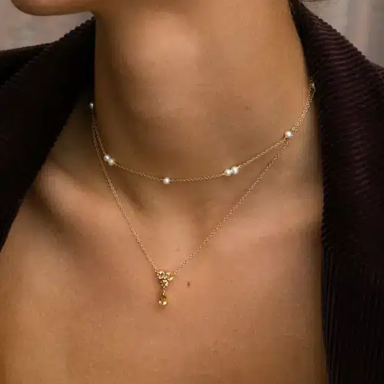 Smuk halskæde med champagne farvet kvarts, vedhænget er inspireret af Karen Blixens fortælling om Olallas uopnåelig kærlighed.