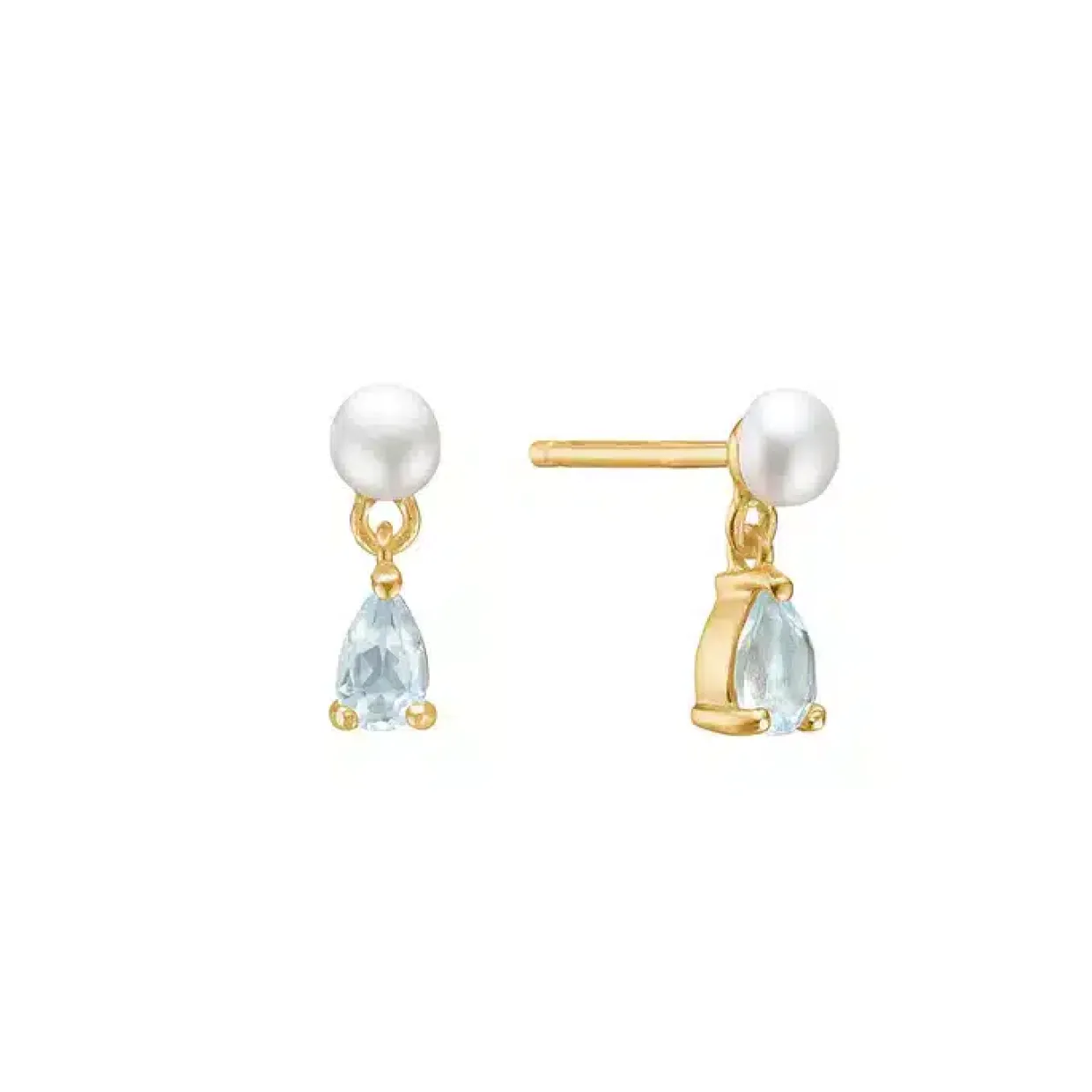 CARRÉ REEF SØLV FORGYLDT ØRERINGE MED PERLE OG TOPAS – FS 4464 BI-BT
