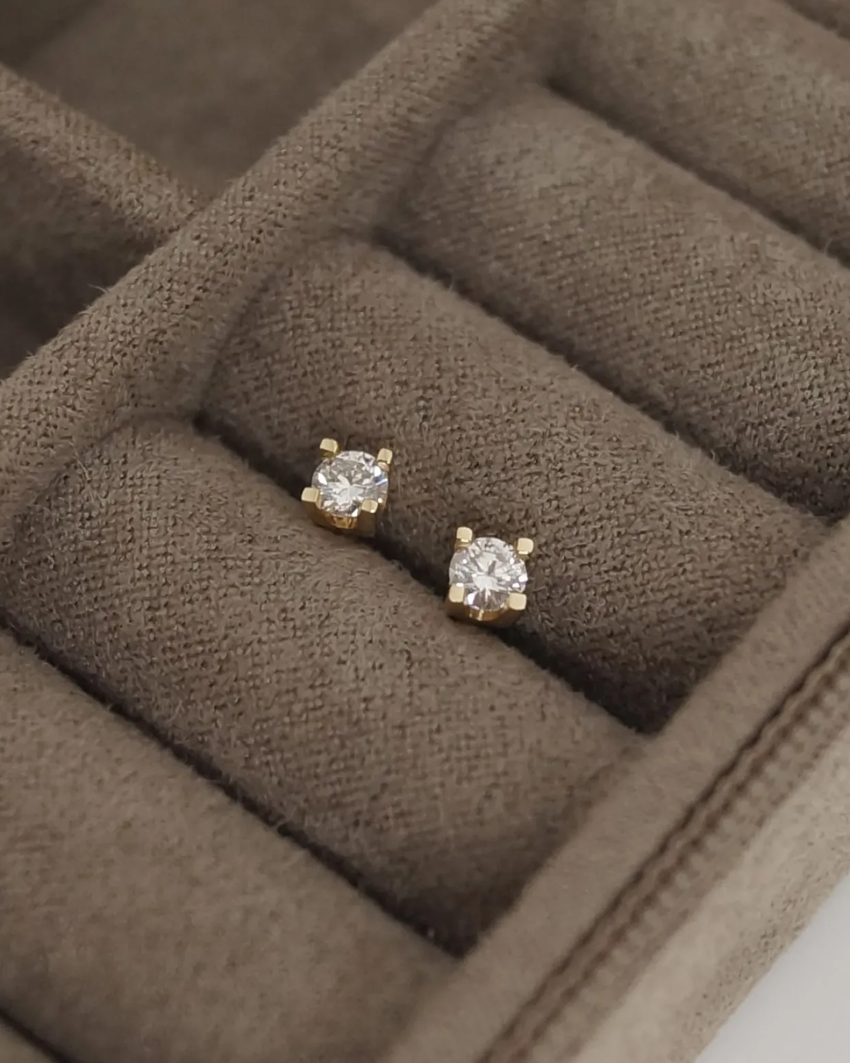 De smukke Eva ørestikker fra Christoffersen Jewellery er skabt i 14 karat guld og smykket med to brillanter på hver 0,20 carat i kvaliteten W/SI. Brillanterne er indfattet i en elegant firegrabbe-fatning, der giver et let og moderne udtryk og lader stenen træde tydeligt frem. Et stilrent valg med klassisk luksus, der passer til enhver lejlighed.