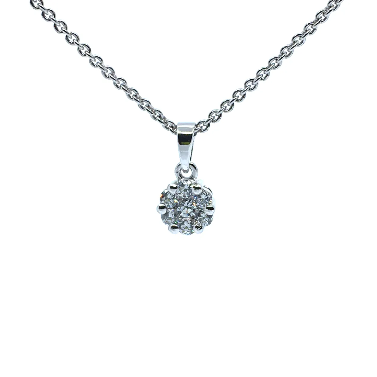 Kæden er en 925 rhodineret sterling sølv rund anker kæde på 42+3 cm i tråd tykkelsen 0,40 mm.