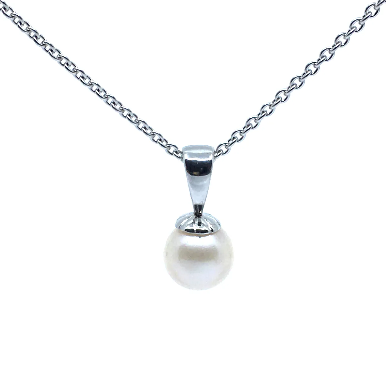Halskæden er en elegant halskæde i sterlingsølv, prydet med en smuk ferskvandsperle. Perlen tilføjer et tidløst og sofistikeret udtryk, mens sølvet giver halskæden et klassisk og luksuriøst look. Dette smykke er ideelt til både hverdagsbrug og særlige lejligheder og udstråler enkel skønhed og elegance. En perfekt gaveidé eller et stilfuldt valg til at fuldende din smykkesamling.