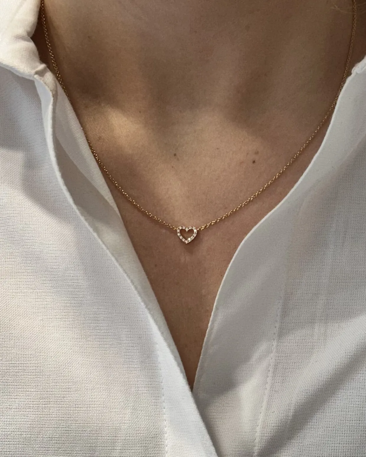 I halskæden sidder et hjerte prydet med i alt 0,07 carat brillanter.