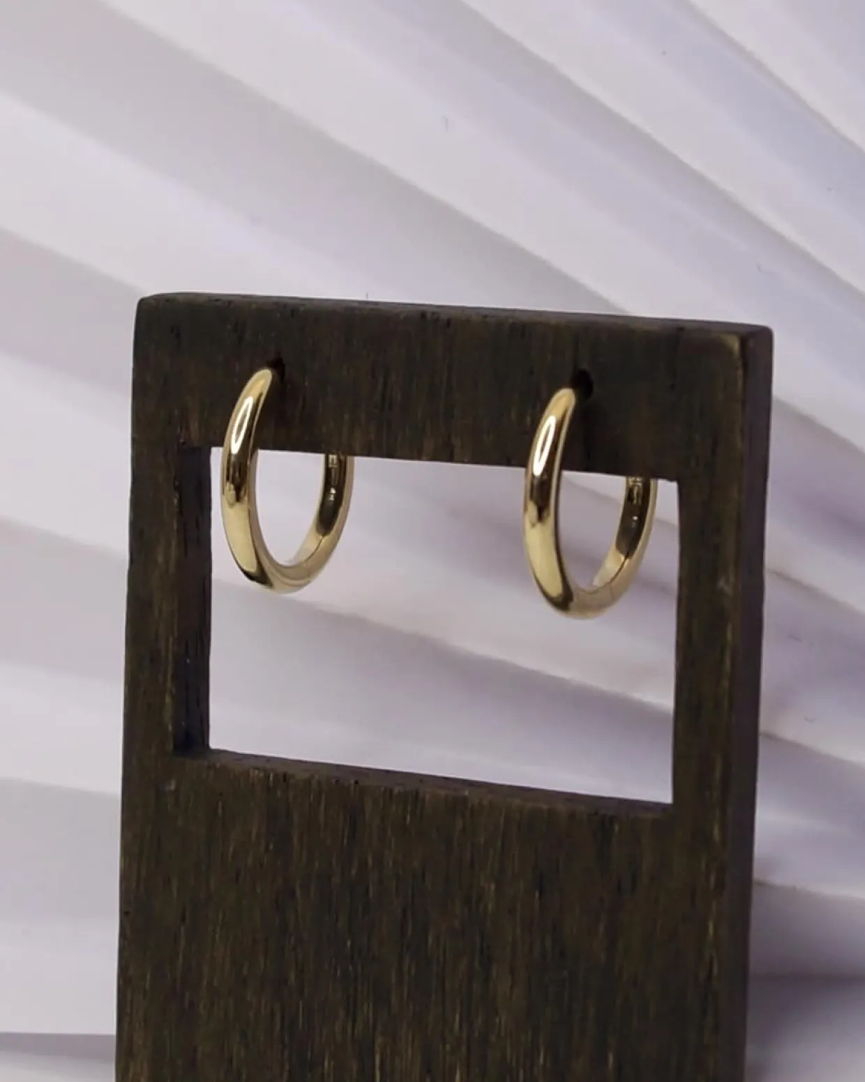 Tilføj et klassisk og elegant touch til dit look med disse elegante rundt formede knækcreoler fra Christoffersen Jewellery. Creolerne er fremstillet i 8 karat guld, hvilket giver et varmt og tidløst udtryk, der passer perfekt til enhver lejlighed. Den enkle og stilrene form gør dem ideelle til både hverdag og fest.