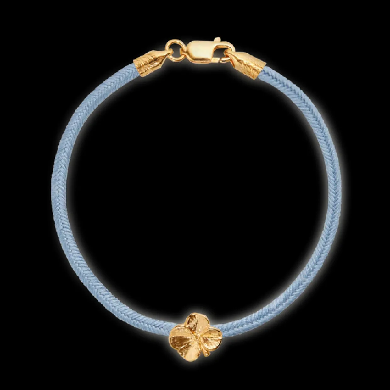 FLORA DANICA ARMBÅND BLÅT SILKESNOR FORGYLDT FIRKLØVER – FLC-SILK-BLUE-18-G