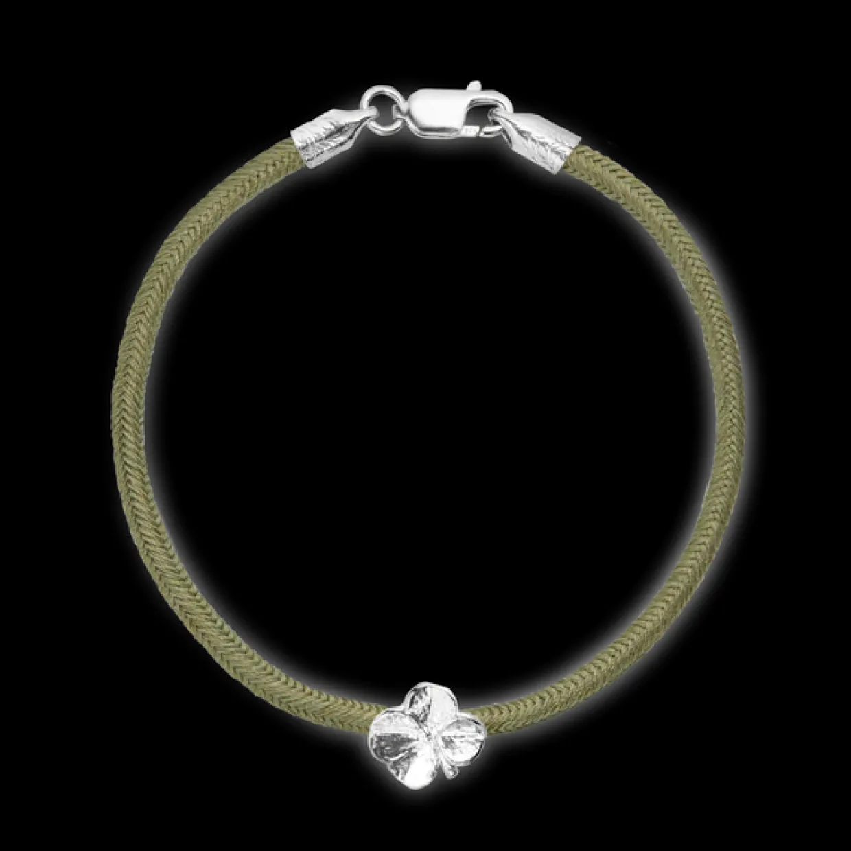 FLORA DANICA ARMBÅND OLIVEN MED SØLV FIRKLØVER – FLC-SILK-OLIVE-18-S