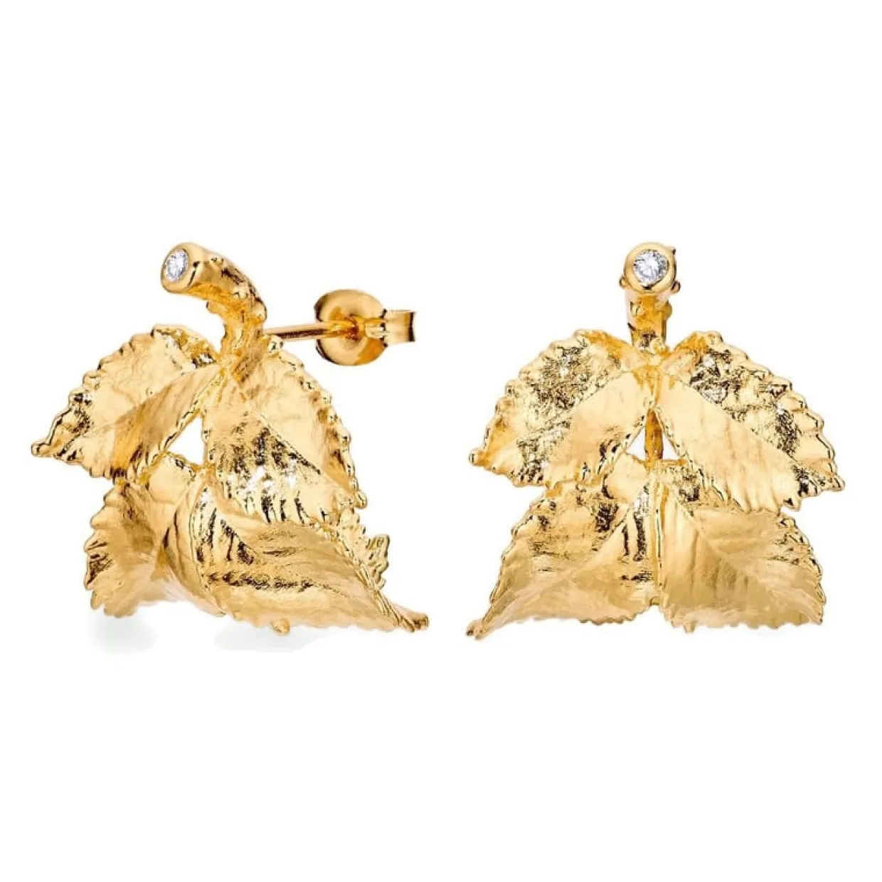 FLORA DANICA ROSENBLAD HOOP ØRERINGE I FORGYLDT SØLV MED DIAMANTER – ROS-HOPC-G