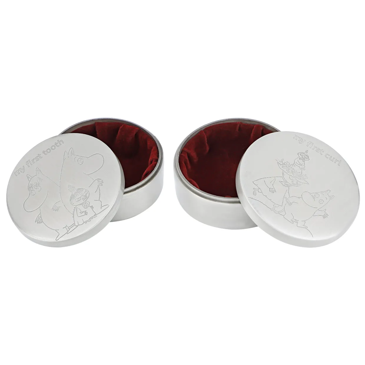 På æskernes låg er fint graveret med tegninger af Mummitrolde.