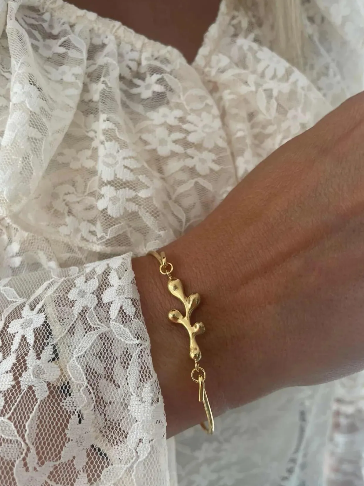 Tilføj et unikt og feminint touch til din smykkesamling med Heirings Florea top. Udført i smukt forgyldt sterling sølv, kombinerer denne top elegant håndværk med et organisk og blomsterinspireret design. Florea toppen er designet til at kunne sættes på en multi-armring, så du kan skabe et personligt og unikt udtryk, der passer til din stil og personlighed.