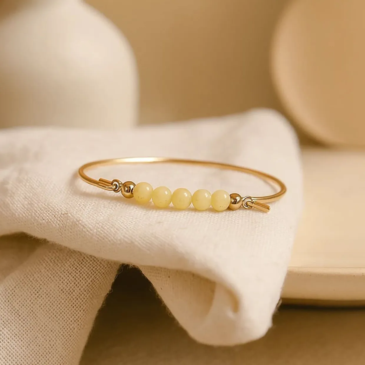 Tilføj et strejf af luksus og personlighed til din stil med denne unikke Heiring gul jade top. Skabt til at passe perfekt til multi-armringen, kombinerer den smukt forgyldt sølv med den varme, naturlige glød fra gul jade – et materiale kendt for både skønhed og symbolik.