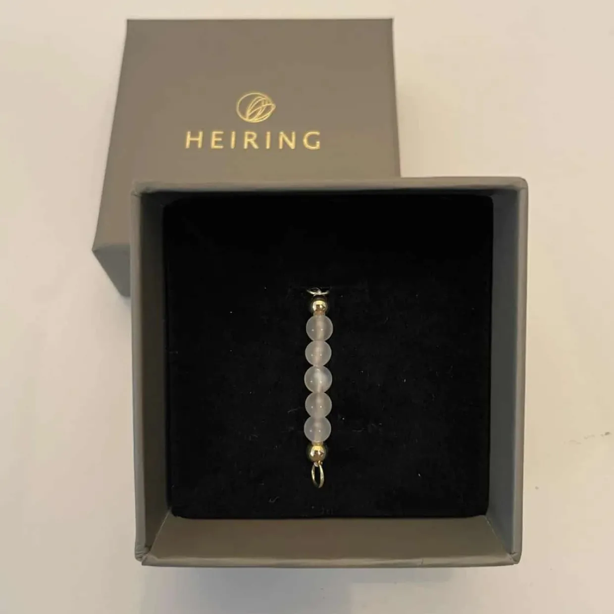 Tilføj et strejf af magi til dit Multi armbånd med denne smukke Hvid Månesten top fra HEIRING. Den fortryllende månesten har et blødt, glimtende skær, der fanger lyset på elegant vis og giver dit smykke et feminint og eksklusivt udtryk.