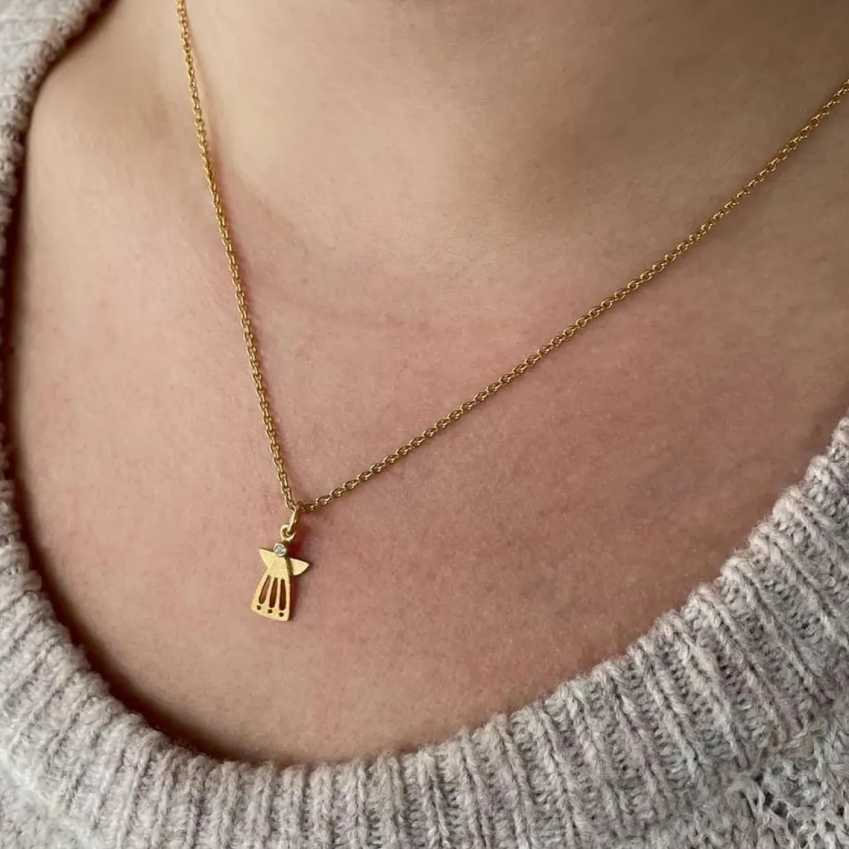 Dette elegante vedhæng fra Heiring er mere end blot et smykke – det er et personligt symbol på beskyttelse, håb og styrke. Skytsenglen er smukt udført i 14 karat guld, hvor det åbne og enkle design giver et tidløst og let udtryk.