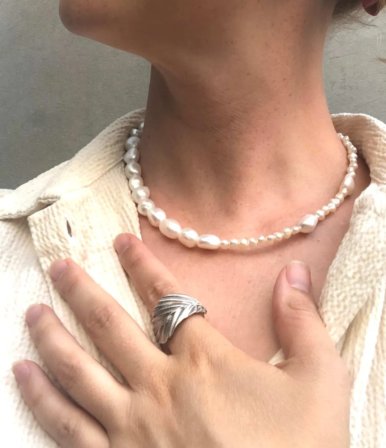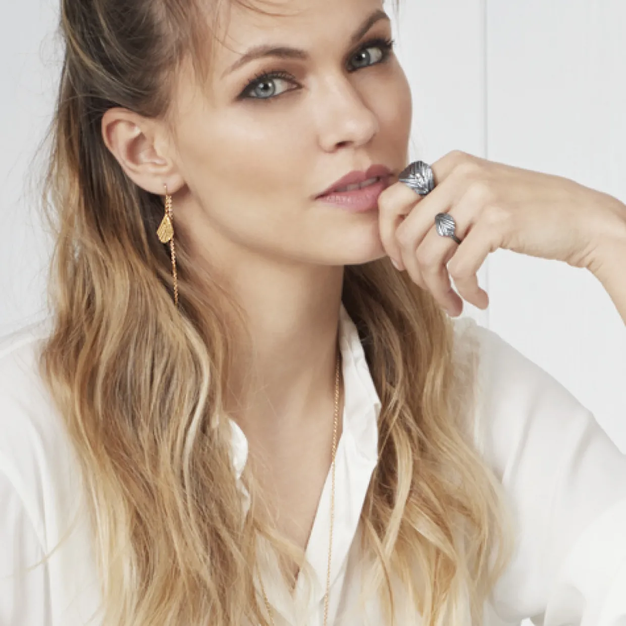 Faggio seriens design er inspireret af de danske bøgeblade. I serien finder du både vedhæng til halskæde, ringe, øreringe og armbånd i enten rhodineret, forgyldt eller oxyderet sterlingsølv.