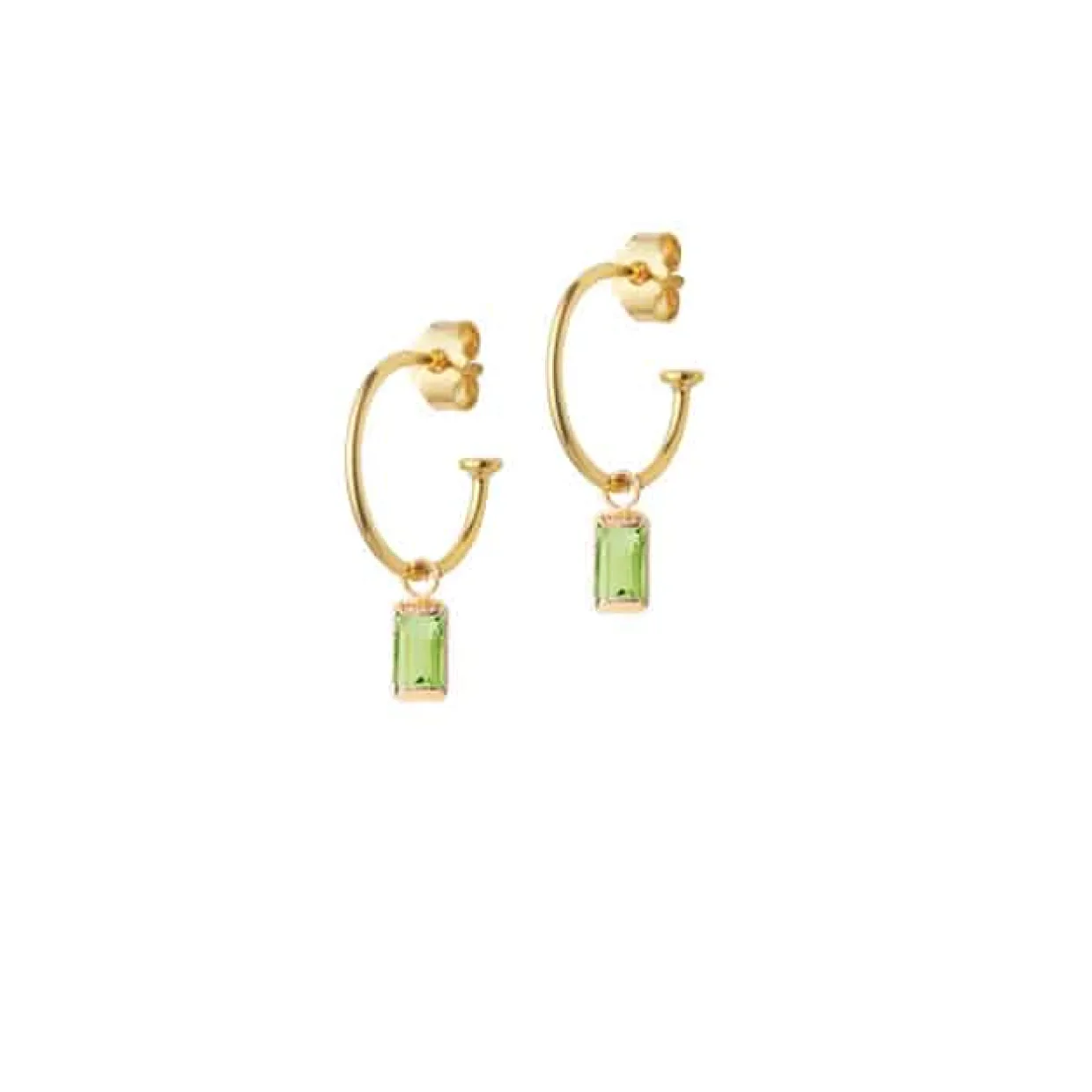 Elegante og enkle øreringe lavet af forgyldt sterling sølv med en firkantet grøn peridot.