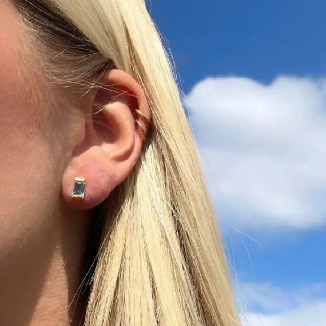 Den geometriske kvadratiske form giver ørestikken et moderne twist, mens den grønne peridot tilfører varme og energi.