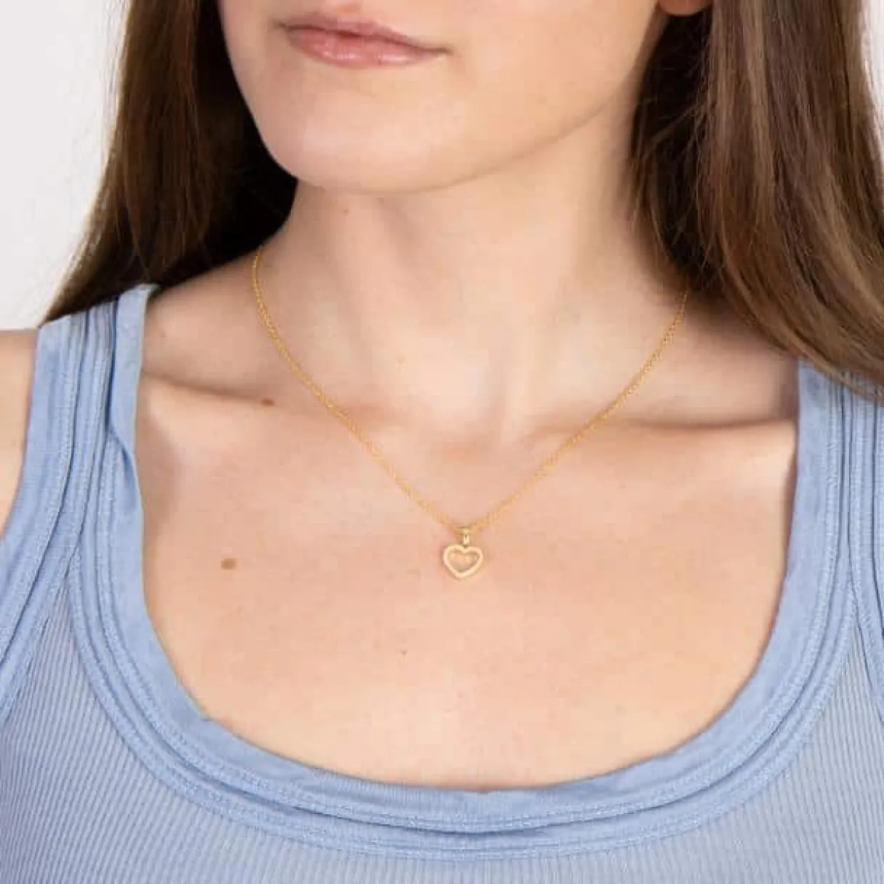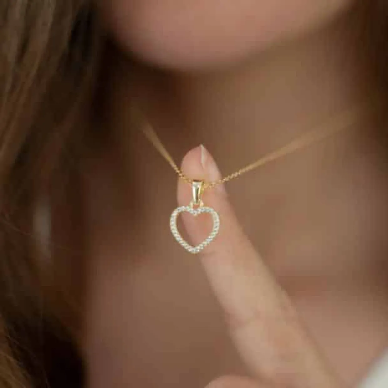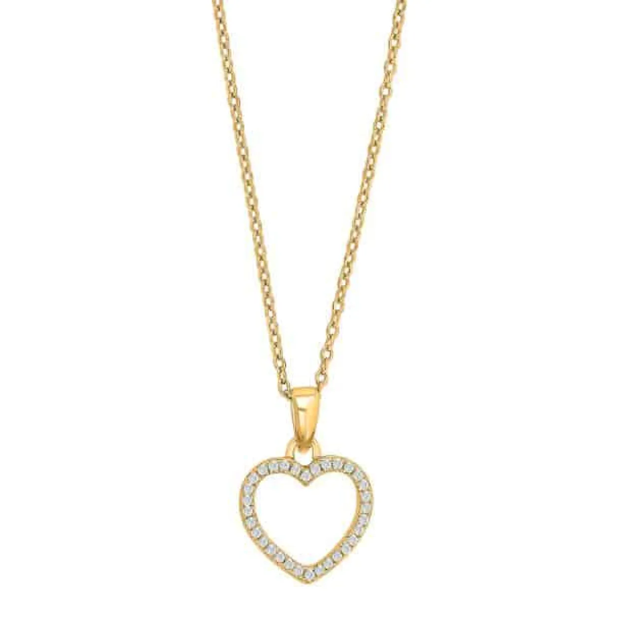 Halskæde i 925 sterling sølv forgyldt, med hjerte vedhæng fattet med hvide zirkonia.