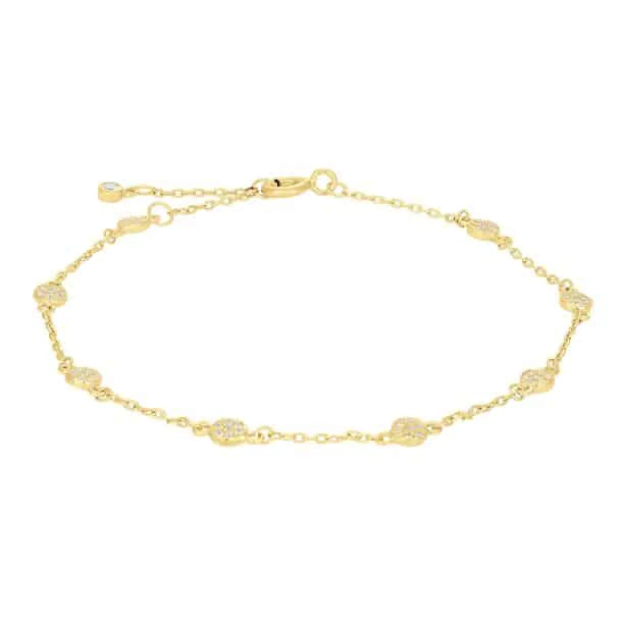 Armbånd i forgyldt 925 sterling sølv, pyntet med fine zirkonia. Armbåndet måler 17cm + 3cm forlænger stykke.