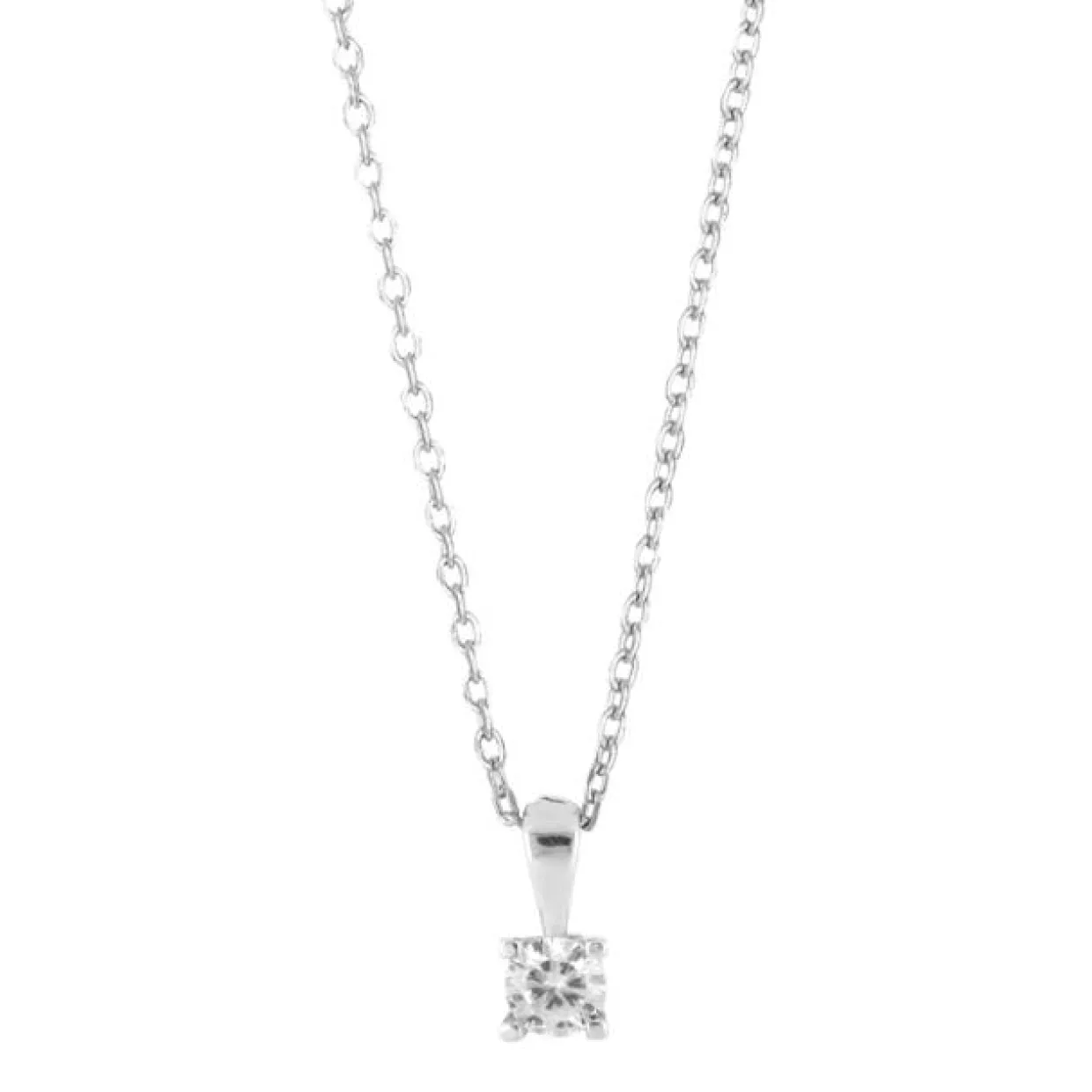 Klassisk og feminin halskæde fremstillet i 925 sterling sølv. Vedhænget har en hvid, kubisk zirkonia på 4 mm i grabbefatning. Der følger en sølv kæde med til vedhænget 42 + 3cm.