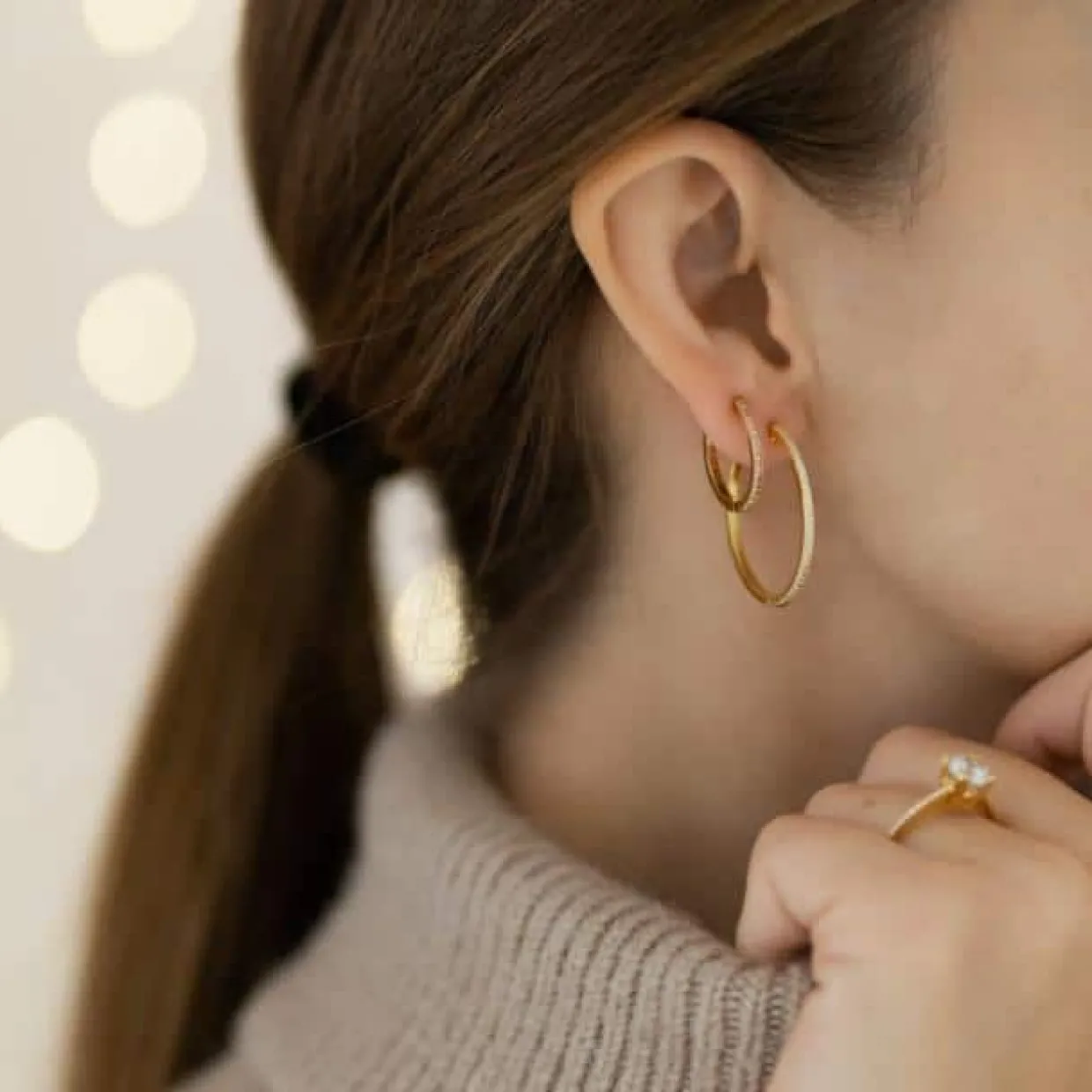 JOANLI NOR JANENOR ØRERINGE SØLV FORGYLDT MED LYSERØDE STEN – 30453335900