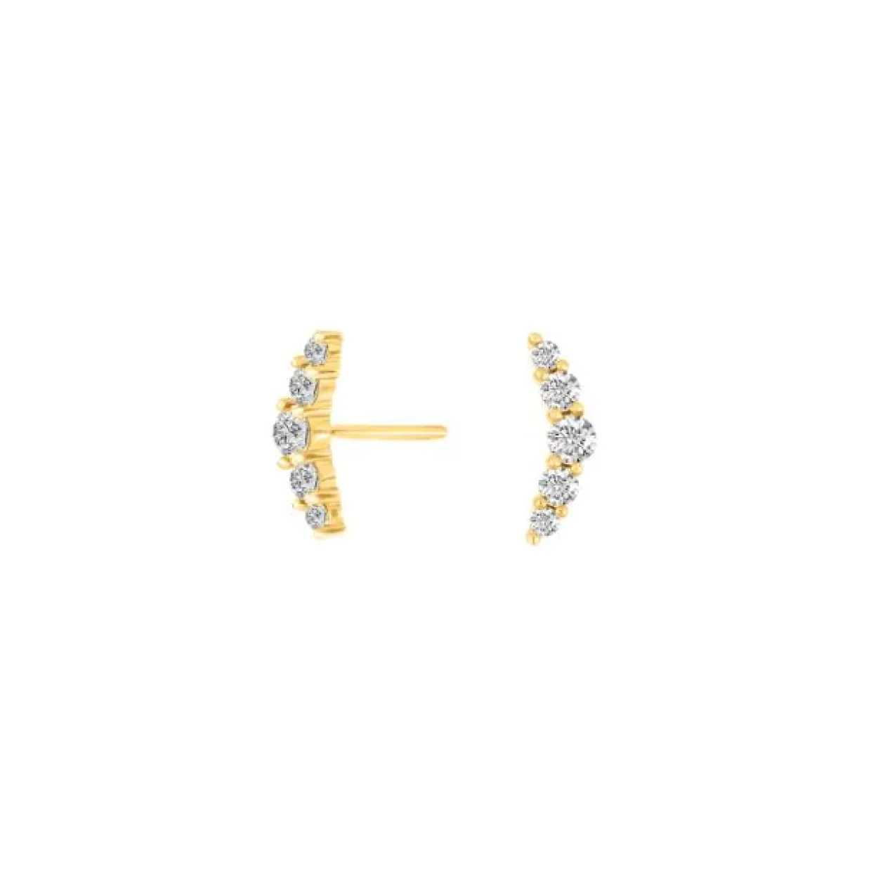 Smukke ørestikker i guldbelagt sterling sølv. Øreringene er måneformet og følger ørets bue naturligt. Ørestikkerne er sat med kubisk zirkonia og måler 3x10mm.