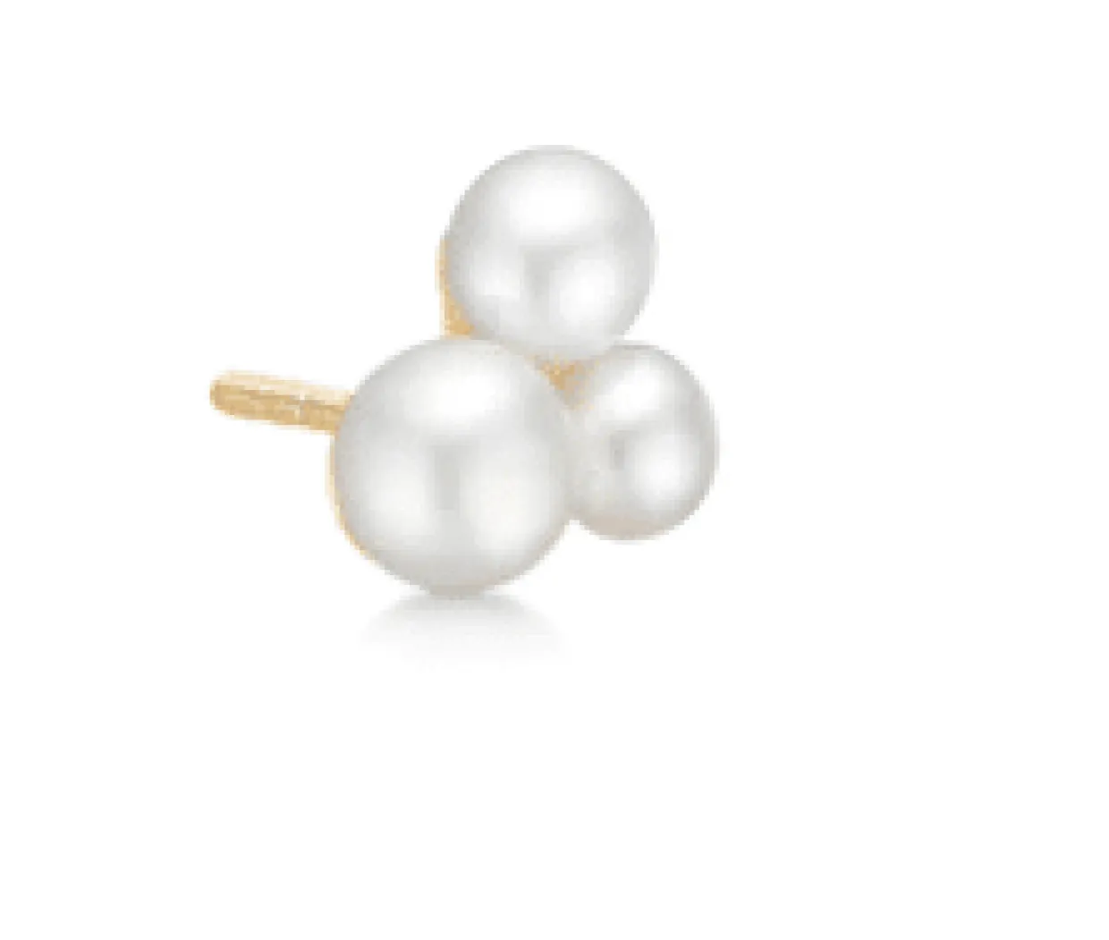 Flot ørering fra Julie Sandlau. Vi gør opmærksom på at dette er en enkelt ørering. Øreringen er lavet ud af 14 kt guld, med 3 flotte hvide ferskvandsperler. Øreringen måler 8 x 8 mm.