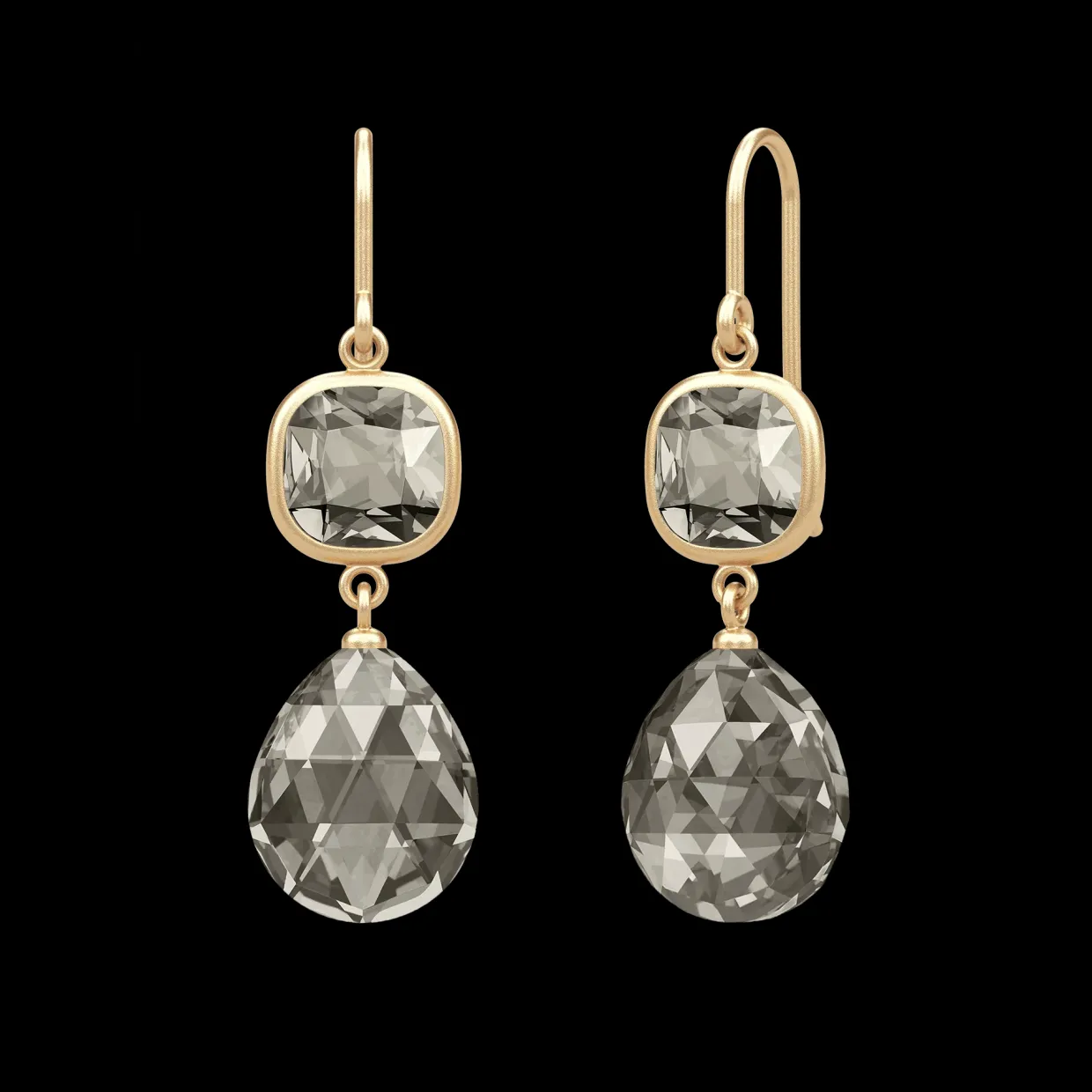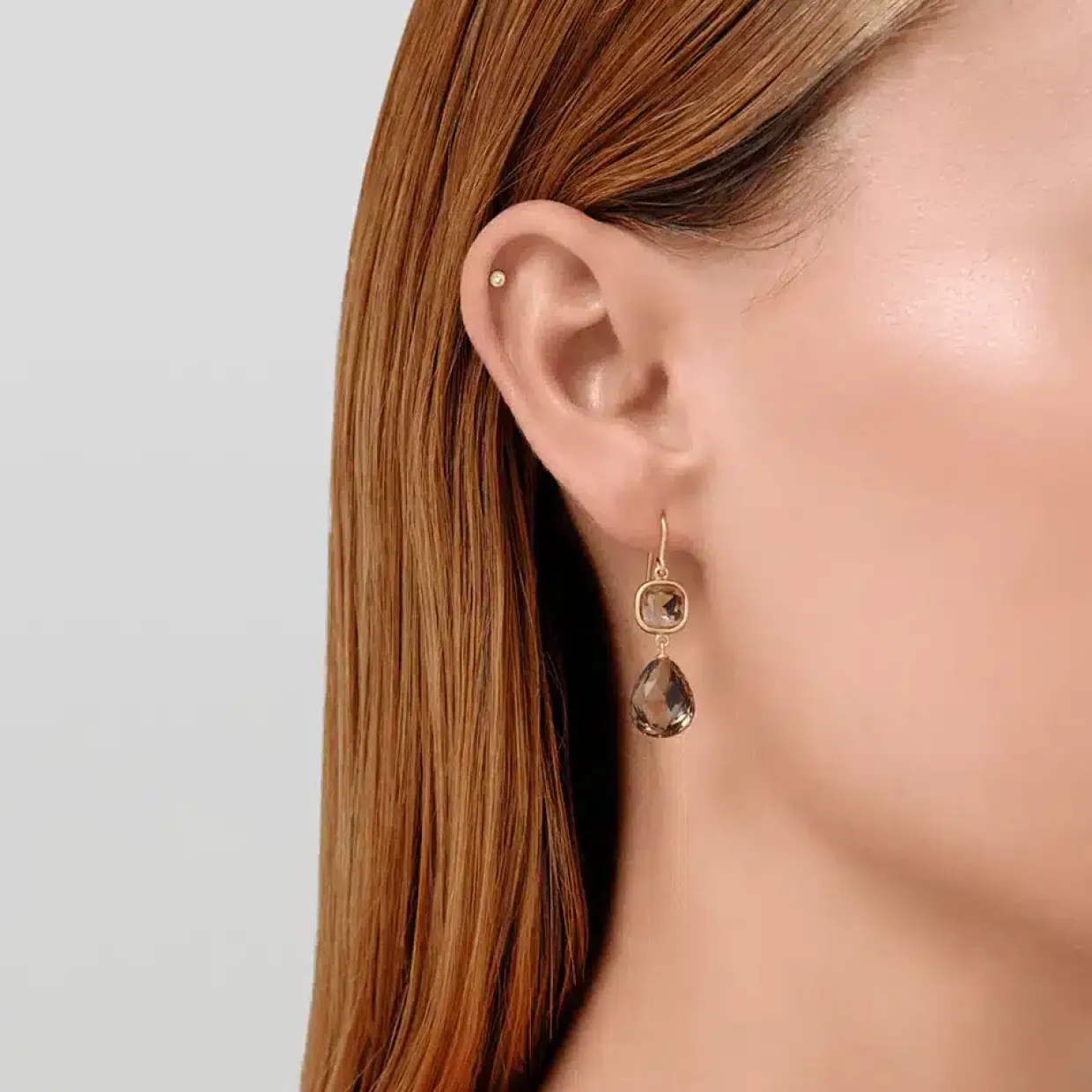 Øreringene har en pude skåret krystal samt en briolette-pærevedhæng.