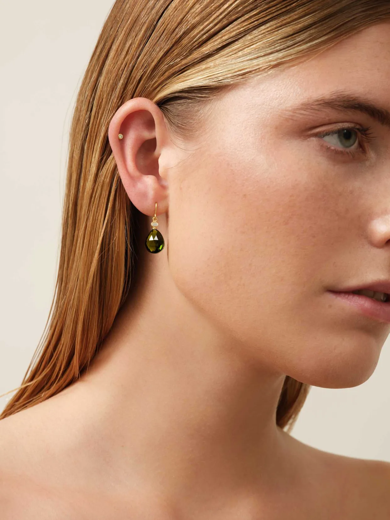 JULIE SANDLAU OFELIA ØREHÆNGER I FORGYLDT SØLV MED OLIVEN FARVET KRYSTAL – HKS780GDOLCRCZ