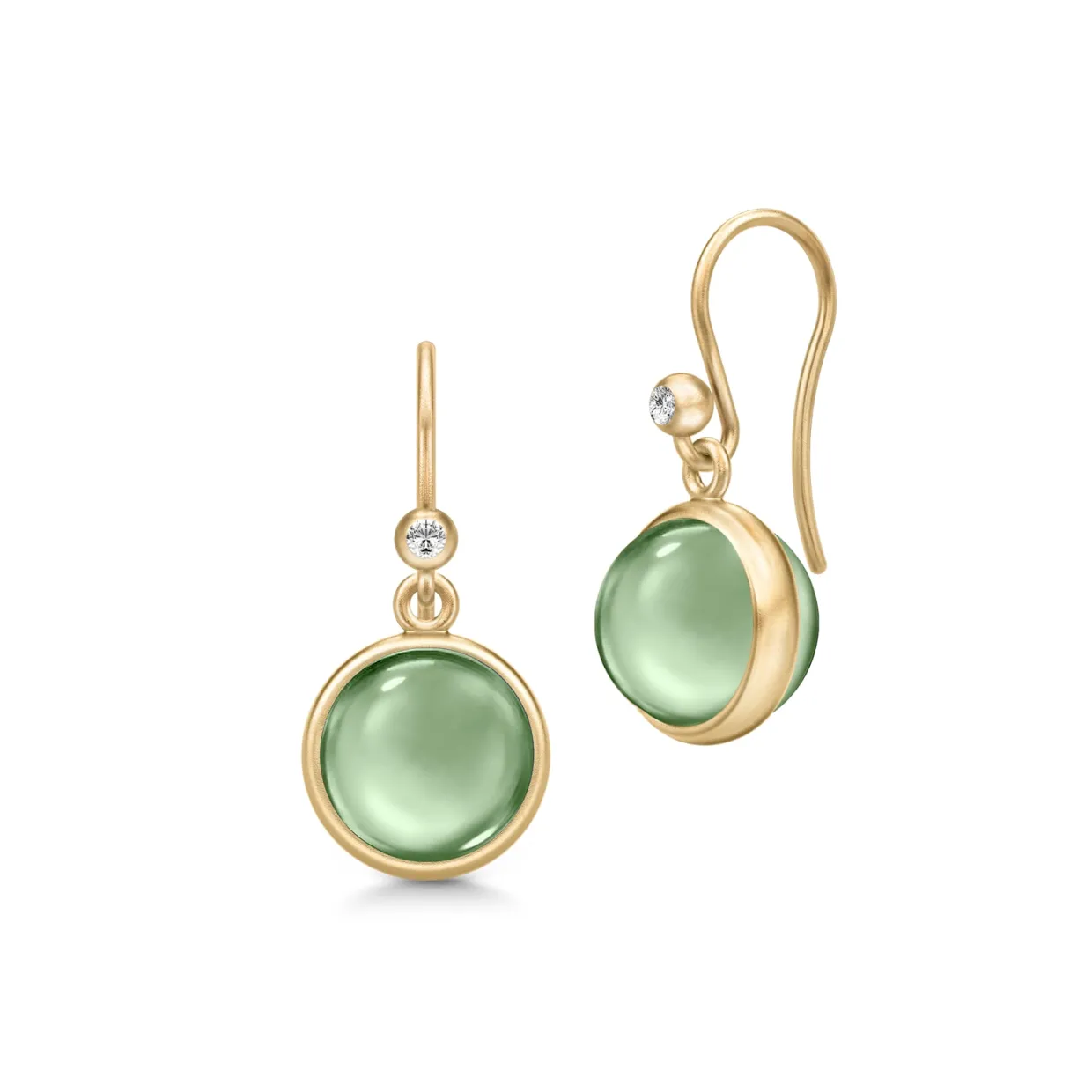 Tilføj et strejf af farverig luksus til dit look med disse elegante Prime ørebøjle fra Julie Sandlau. Øreringene er udført i 22 karat forgyldt sterlingsølv og smukt prydet med facetslebne grønne ametyst-farvede krystaller, indrammet af små funklende hvide zirkoner. Et feminint og raffineret design, der kombinerer klassisk håndværk med moderne elegance.
