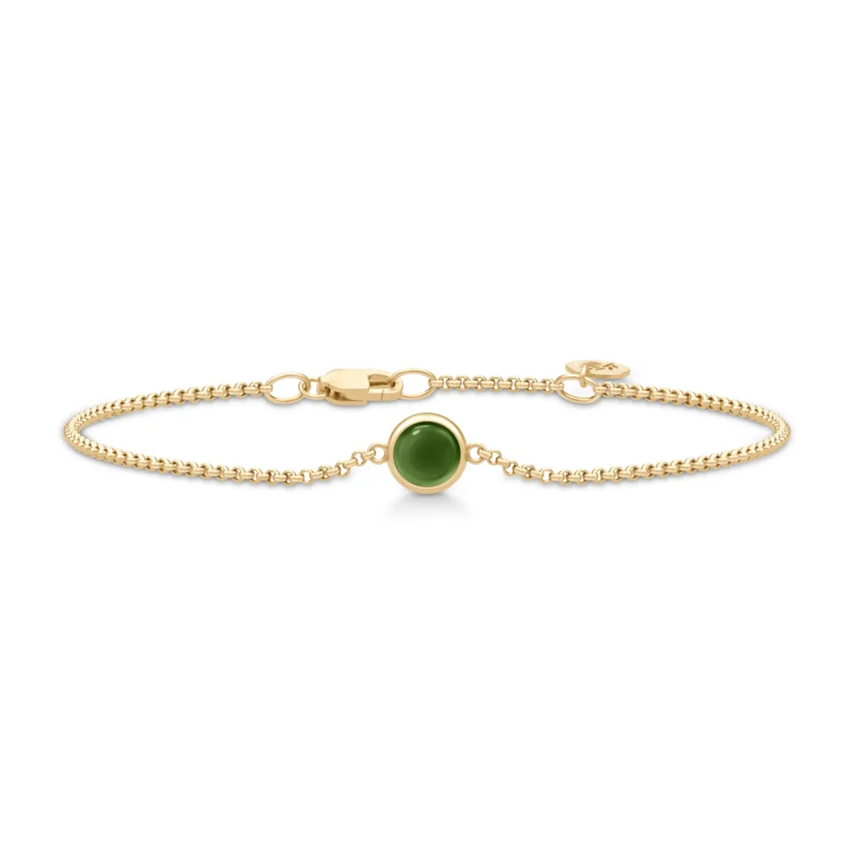 Armbåndets midtpunkt er en mosgrøn krystal med en rund cabochon-slibning, der fremhæver stenens naturlige skønhed og dybde. Dette armbånd er det perfekte valg for den stilbevidste, der ønsker at tilføje et strejf af farve og elegance til sin smykkesamling.