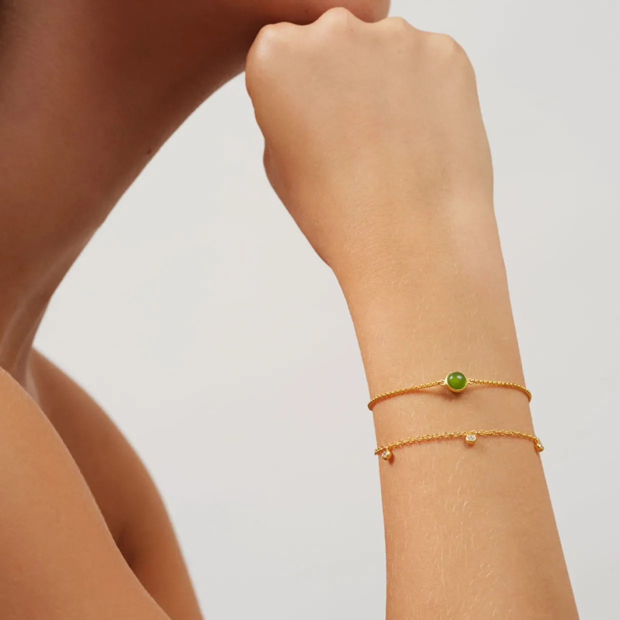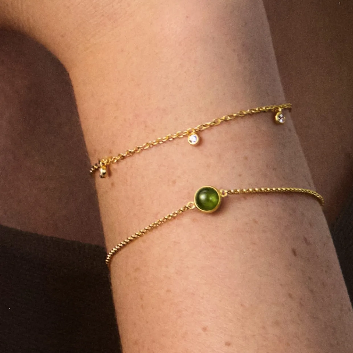 JULIE SANDLAU PRIMINI ARMBÅND FORGYLDT SØLV MED MOSGRØN KRYSTAL – BR258GDMGCR