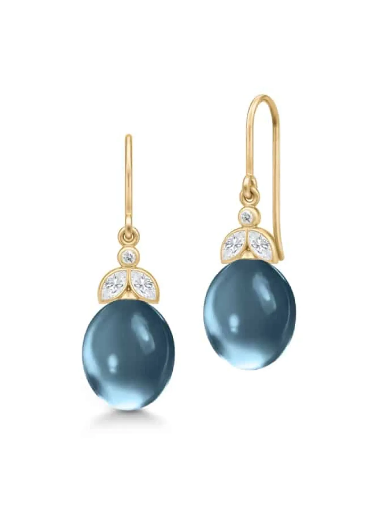 Stenene er en safir blå krystal og over den sidder tre syntetiske zirkonia.
