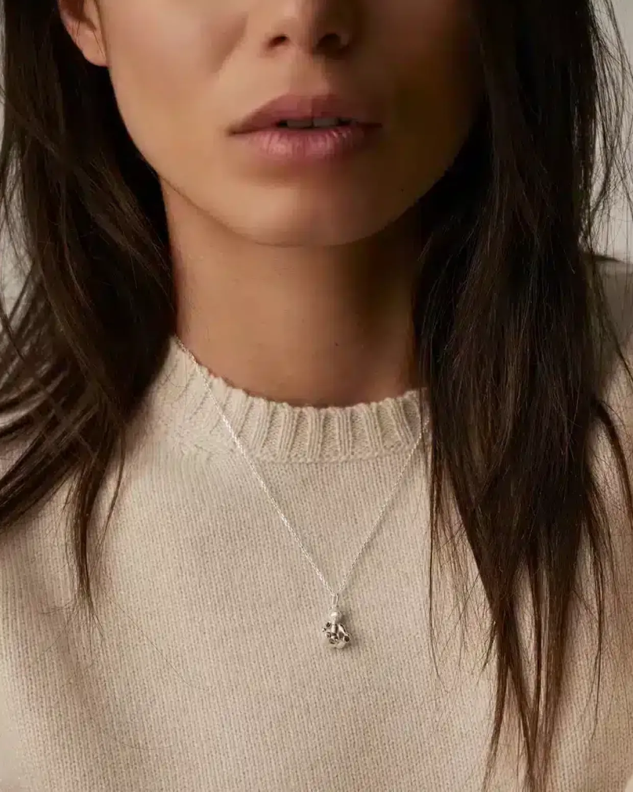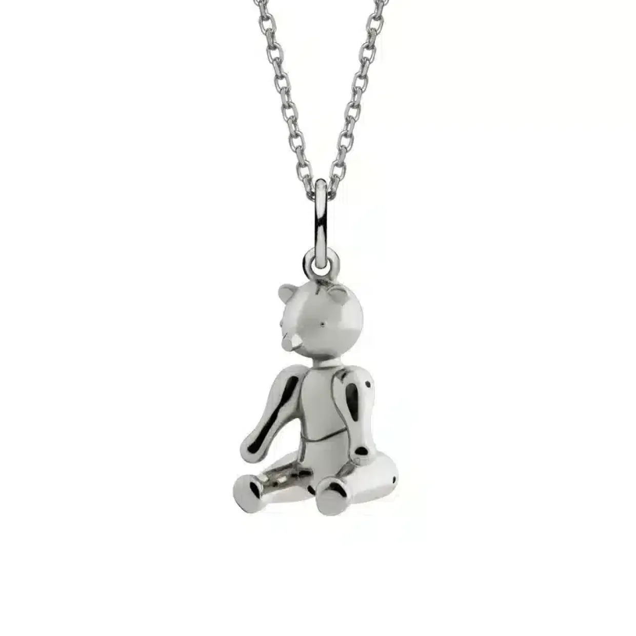 Vedhænget er udført i 925 sterling sølv med fine detaljer, der giver bjørnen et blødt og levende udtryk. Det minimalistiske design gør smykket velegnet til både hverdag og fest, og det kan nemt styles alene for et enkelt look eller kombineres med andre smykker for et mere personligt udtryk.