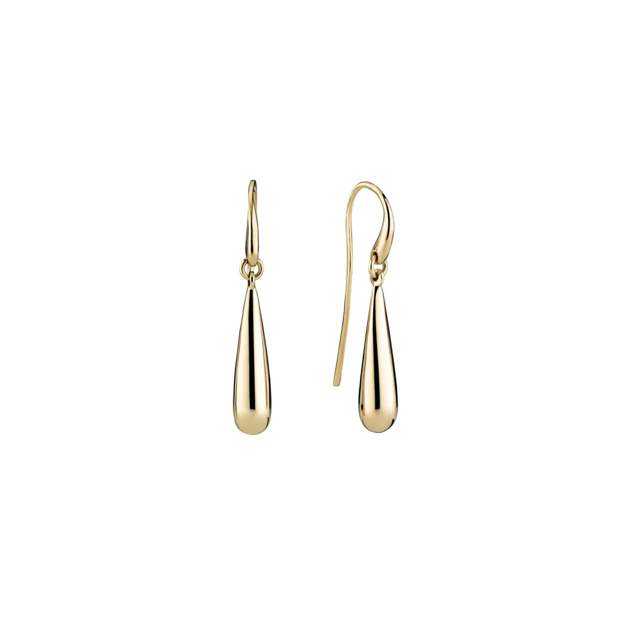 8 karat guld ørehænger udformet som lange dråber. Dråberne er helt enkle og blanke i overfladen. Øreringene måler 21mm og kommer med ørekroge.