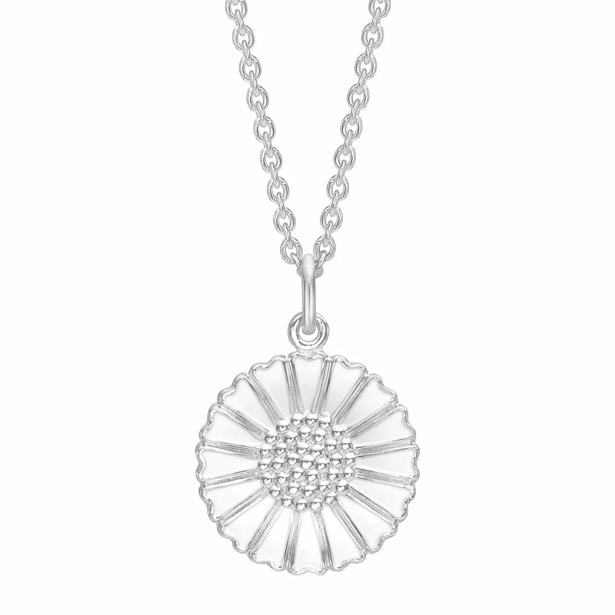 LUND COPENHAGEN MARGUERIT HALSKÆDE I SØLV MED HVID EMALJE 18 MM – 902018-H