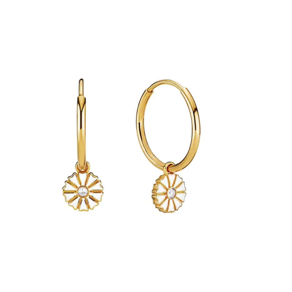 Elegant og enkel ørering fra Lund Copenhagen, med en lille marguerit der hænger i en creol.