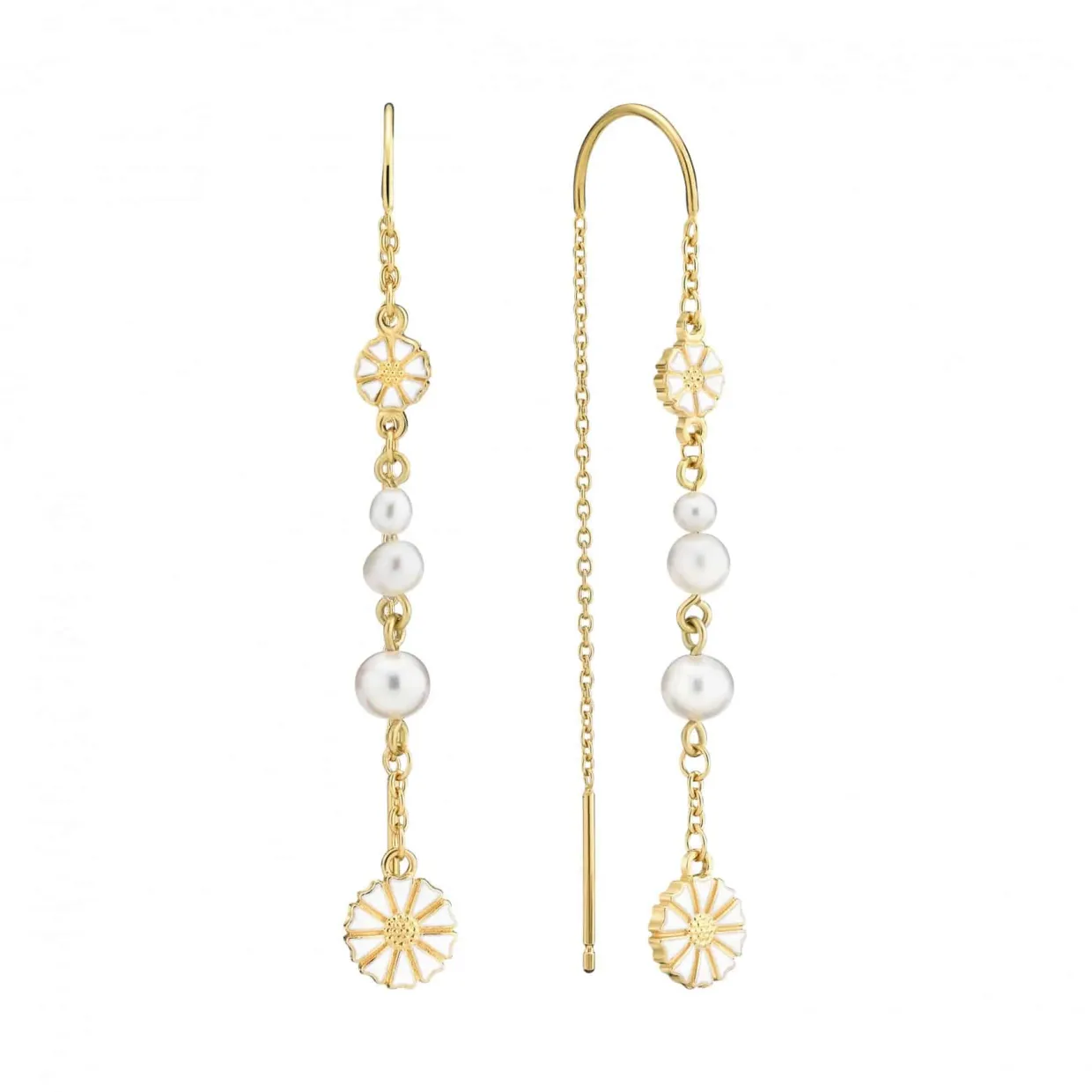 LUND COPENHAGEN ØRERINGE MARGUERIT MED PERLER PÅ KÆDE – 9095074-33-M
